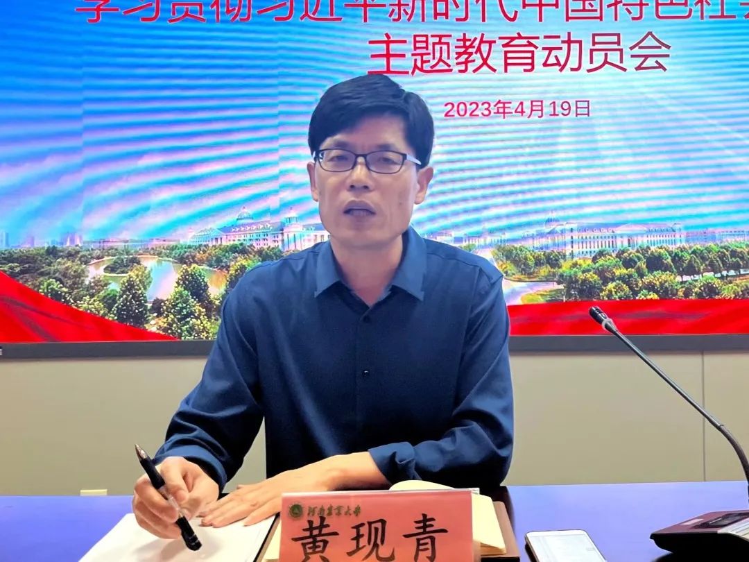 于文化路校区一百人报告厅召开学习贯彻习近平新时代中国特色社会主义思想主题教育动员会。院长黄现青、院党委副书记李蓓蓓、副院长张剑出席会议,全体教职工及学生代表参加。
