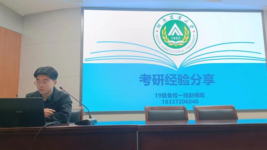 营养系教工党支部、食品营养与健康系共同组织下,于校区100人报告厅组织举办了为师生办实事系列活动之考研经验交流会。此次交流会诚邀成功“上岸”的高分同学——张波、赵俊平、赵楠雨、李雨蒙、孟浩、龚秋洋进行考研经验分享。党建中心尤俊尧主持此次会议,营养系高晓平、雷萌萌、沈玥三位老师出席会议,食品营养与检验教育、食品营养与健康及其他相关专业有志考研的各年级同学100余人参加了本次考研经验交流会。