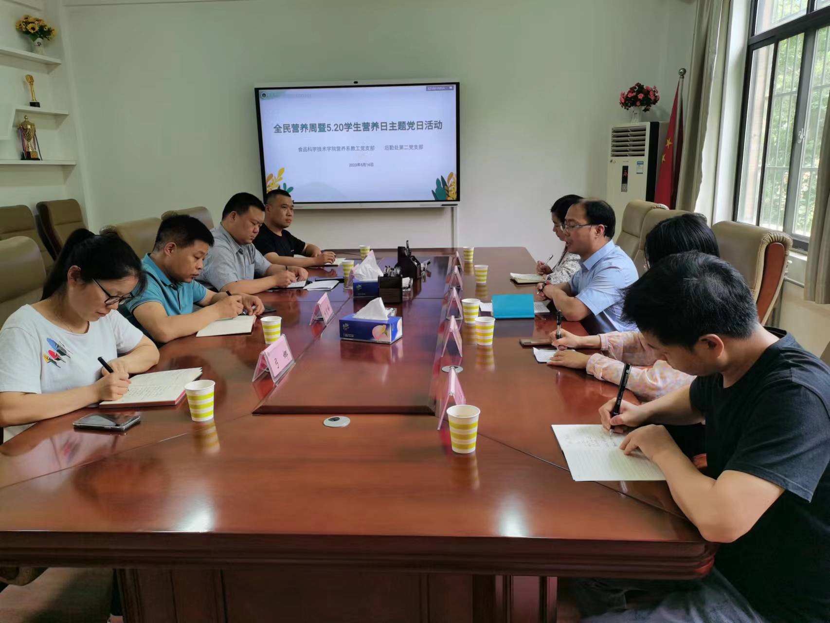 高晓平介绍了此行目的,一是向对口兄弟支部学习党建经验;二是向兄弟支部推介营养系教工党支部及食品营养与健康系,加深互相了解;三是经过前期对学生饮食习惯、饮食结构以及对饮食窗口建议开展了调研,现将调研结果反馈给伙食科;四是探索两个支部在食品营养与健康领域合作可能性,为农大高质量的餐饮品牌增光添彩。同时,交流了本周五准备在文化路校区开展2023全民营养周和5.20学生营养日活动暨第一届探花 营养知识健康行计划基本情况。