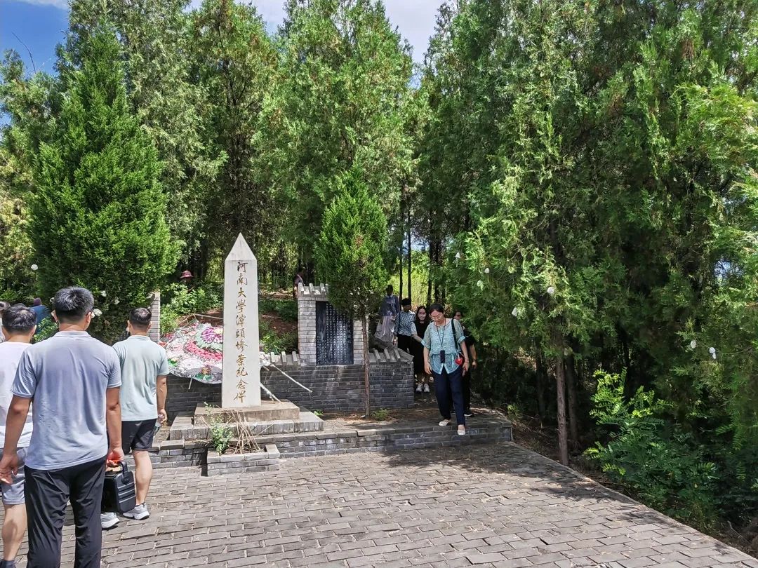 穿过大王庙村,来到河南大学潭头惨案纪念碑,院党委副书记李蓓蓓为老师们讲解那段悲惨的历史,随后全体默哀,并鞠躬缅怀。
