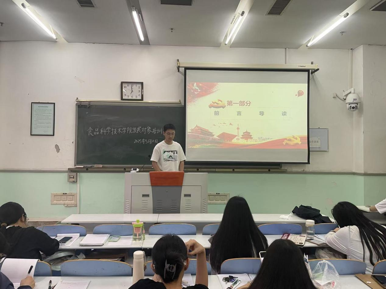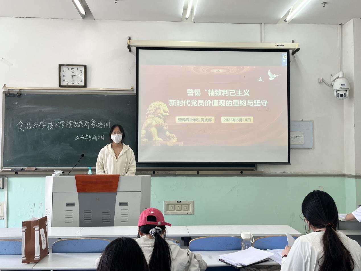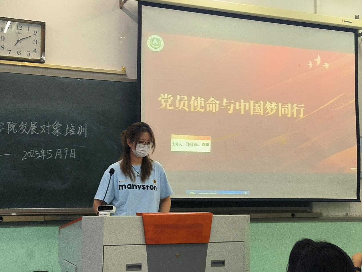 5月9日,食工专业学生党支部刘璇讲授了“党员使命与中国梦同行”,她以新时代十年辉煌成就开篇,结合党的性质与中国梦内涵,剖析“点线面”逻辑关联,强调党员在乡村振兴、科技创新等领域的先锋模范作用,通过黄文秀、陈祥榕等先进事迹传递担当精神。现场还以反面案例讲授了形式主义危害,倡导“每日反思、每周沟通、每月服务”的“三个一”行动。引导发展对象以此次培训为契机,把个人理想融入国家发展,践行初心,以实际行动为中国梦添砖加瓦。