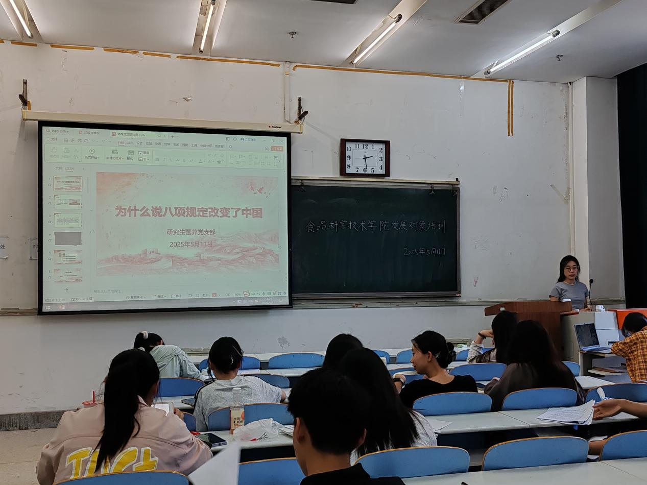 5月11日,营养研究生党支部李红萧讲授了“为什么说八项规定改变了中国”。她从四个角度展开解读:破题:针对党内作风积弊,以刮骨疗毒的决心破解“管党不力必失民心”的执政难题;支点:12年来,一系列剑指作风之弊的实招硬招频频出击,一项项针对作风建设的“组合拳”效果空前,每年都有新招数,不断释放新信号;回声:强调作风建设永远在路上,从整治“舌尖浪费”到“会所歪风”,持续释放“严”的信号;目标:通过徙木立信的诚意推动社会风气转变,让群众从“一顿饭、一张卡”的改变中看到共产党人的行动自觉。此次培训让发展对象认识到,八项规定不仅是反腐倡廉的突破口,更是党群关系的连心桥。
