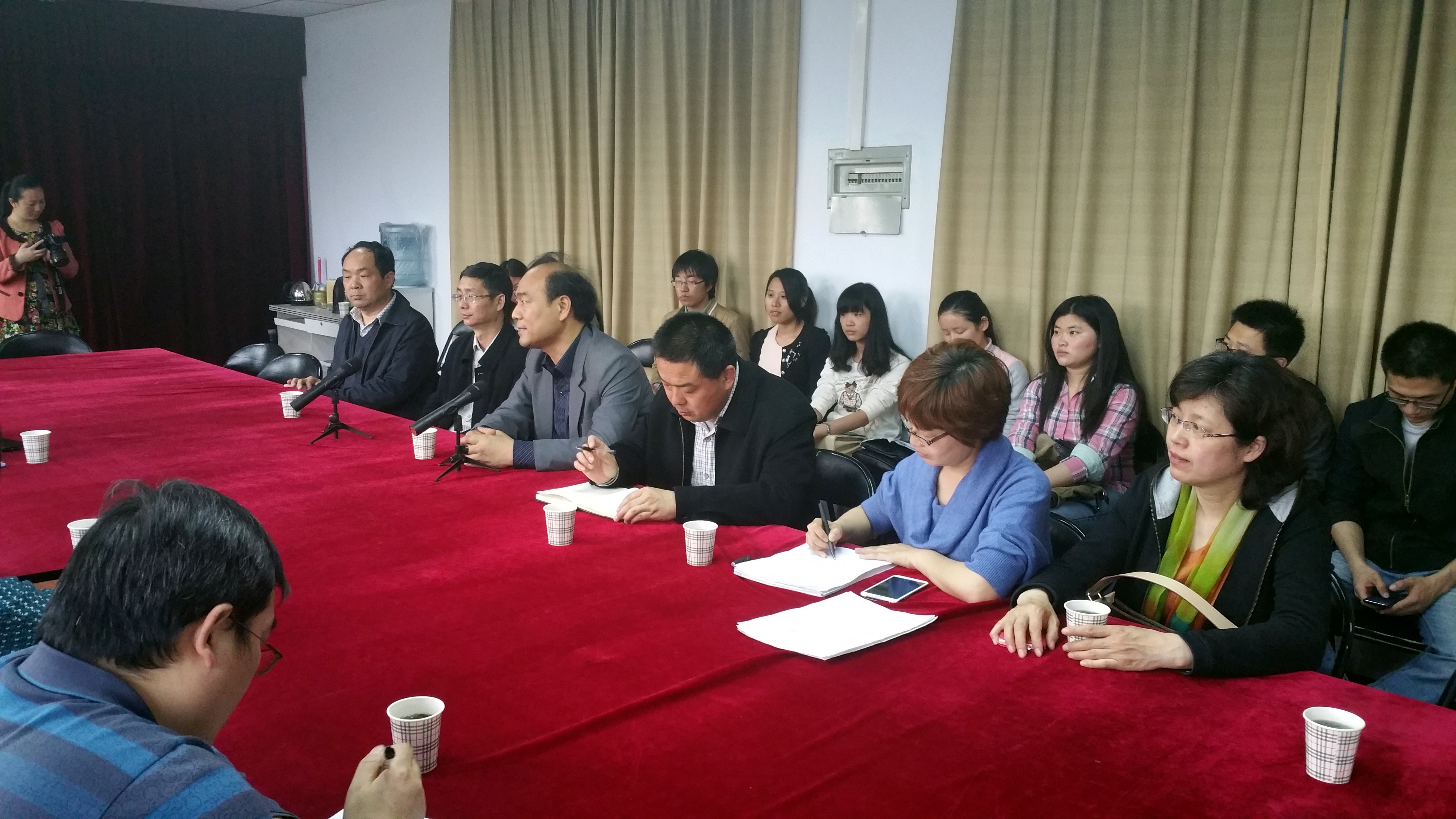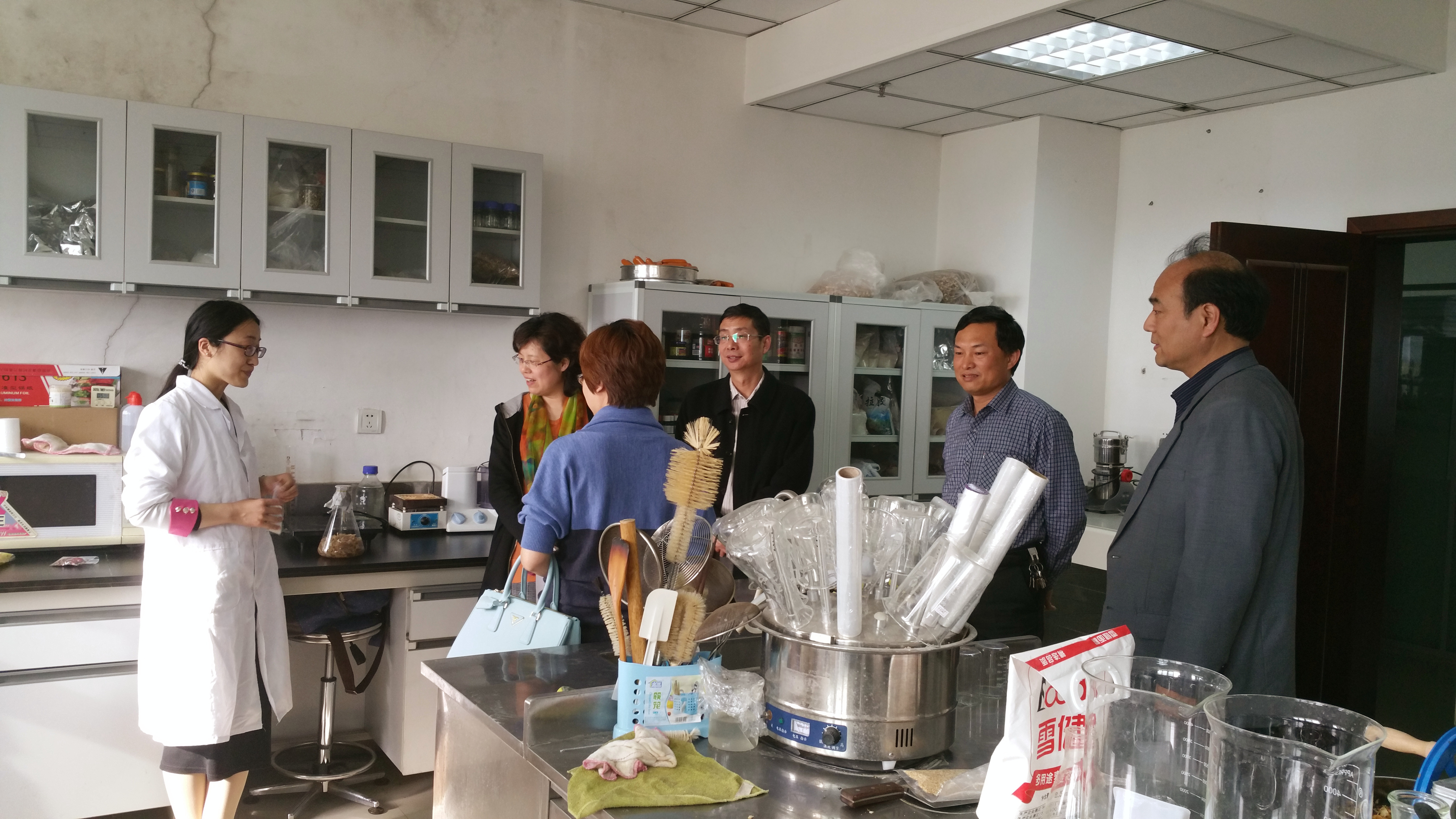 本次毕业实习中期检查的第一站是河南省农科院农产品加工所,2015年4月22日下午,在学院党委杨喜洲书记和艾志录副院长亲自带领下,院办公室主任冯勤等老师一行5人来到了河南省农科院农产品加工所,加工所的路风银所长和万景瑞书记对一行人的到来表示热烈欢迎,实习检查组首先检查了学生的实习到岗情况、并深入了解了学生的实习进展现状,督促同学们抓紧时间,保质保量按时完成实习任务。然后,实习检查组和农科院加工所有关领导和工作人员、部分学生代表开展了为时1个小时左右的座谈会,认真听取了实习单位和学生对学校实习工作的相关意见和看法。