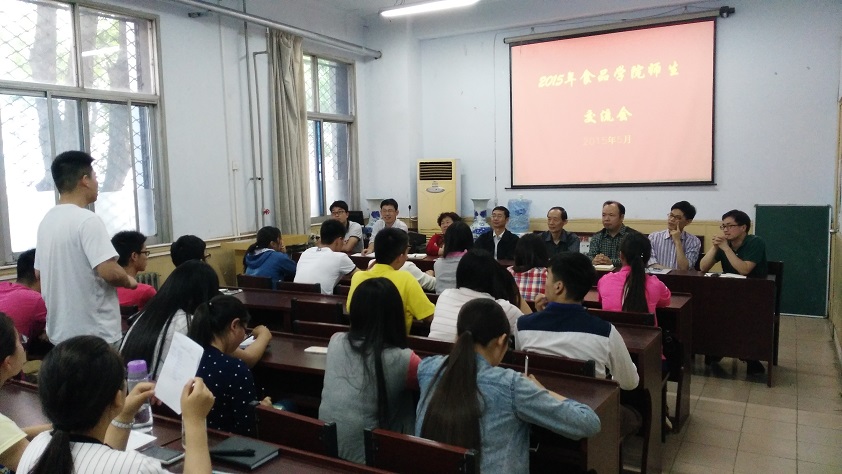 最后,杨喜洲书记做了总结讲话,他提出同学们应该树立“大志”,努力学习,做好自己应做的每一件事;胸有“大爱”,学好过硬的本领回报父母、学校及社会;陶冶高尚情操,成为具有“大雅”之人,成为对社会有用的人。杨书记还表示,本次师生交流会意义很大,使师生之间增进了了解,有利于学校学院改善自已的工作,更好地为学生服务。学校学院一定会努力改善办学条件,提高教学水平与管理能力,把同学们培养成为符合中原经济区建设要求的、能在食品及相关领域内从事工程设计、生产与质量安全管理、营养搭配、产品开发、科学研究等方面工作的高级专业技术人才。