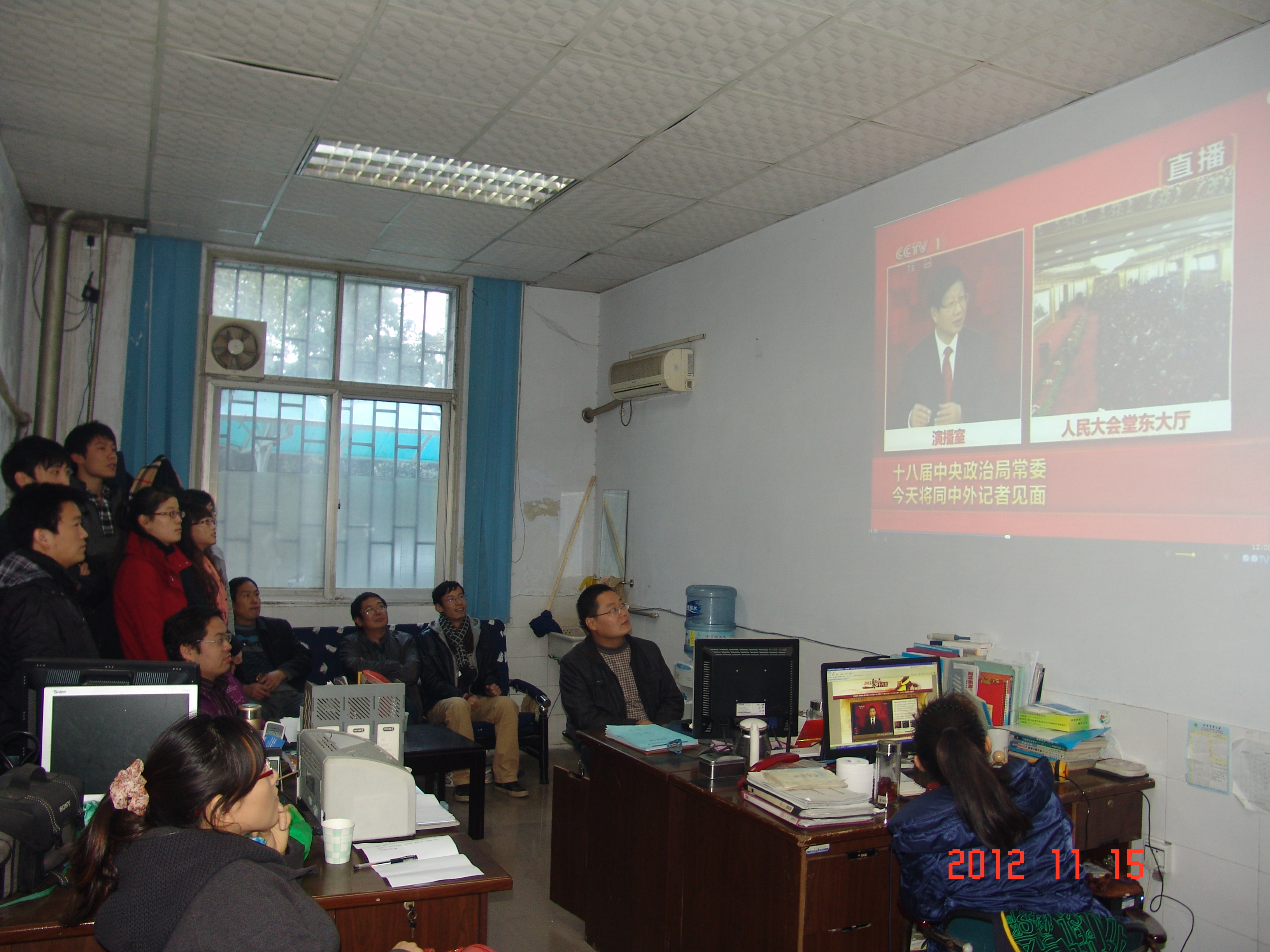 11月15日上午11点,探花 党委组织教职工生代表集体收看了新一届中央领导集体与中外记者见面会的现场直播,并在观看后开展了热烈的学习讨论。