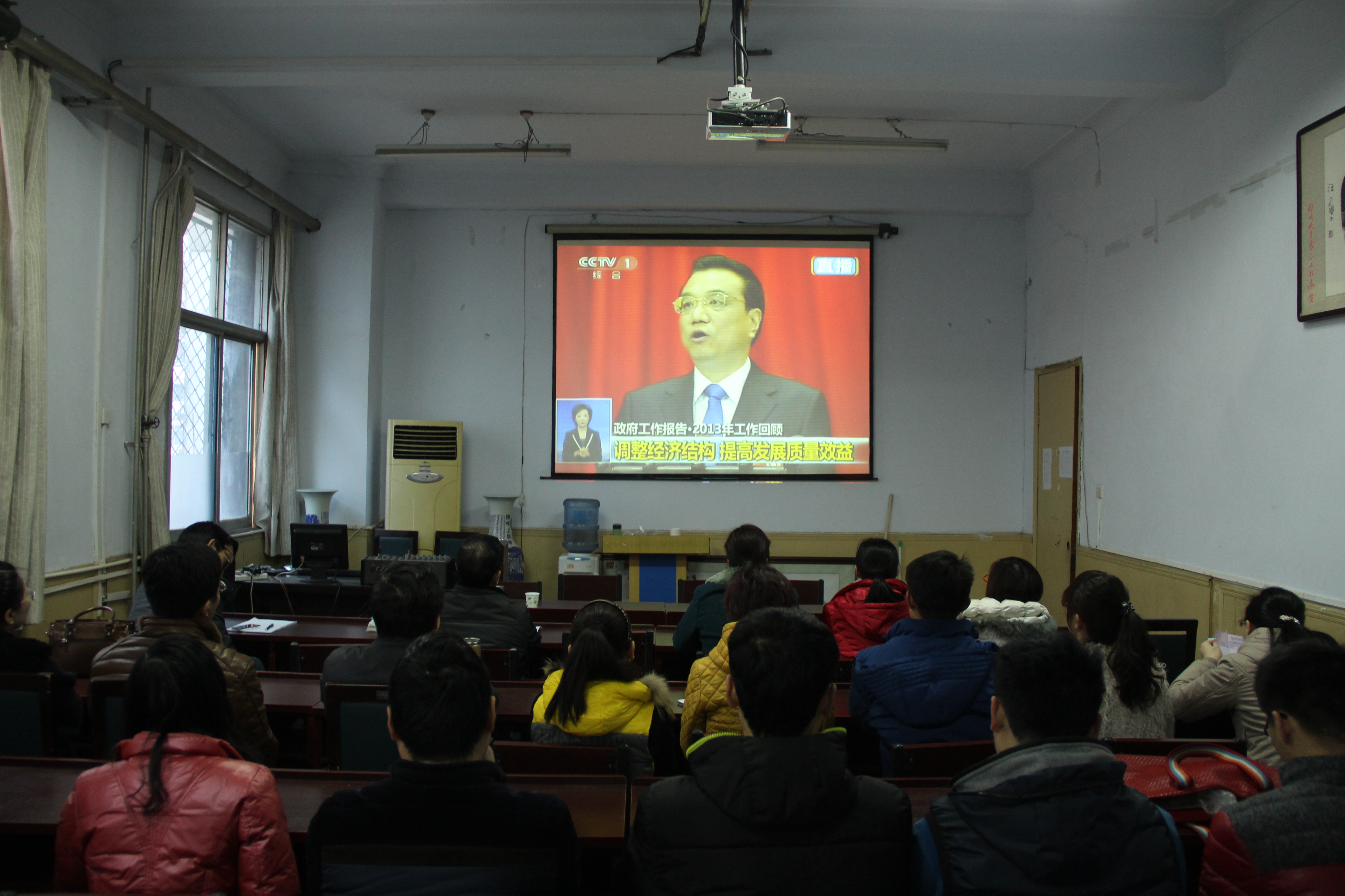 3月5日9时,中华人民共和国第十二届全国人民代表大会第二次会议在人民大会堂隆重举行。探花 党委组织全体教工和学生代表在院报告厅观看开幕式盛况,认真收看了李克强总理所作的政府工作报告。