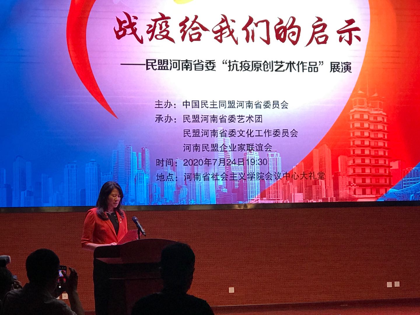 2020年7月24日晚上7:30,在河南省社会主义学院会议中心大礼堂举行了民盟河南省委“抗疫原创艺术作品”展演活动。