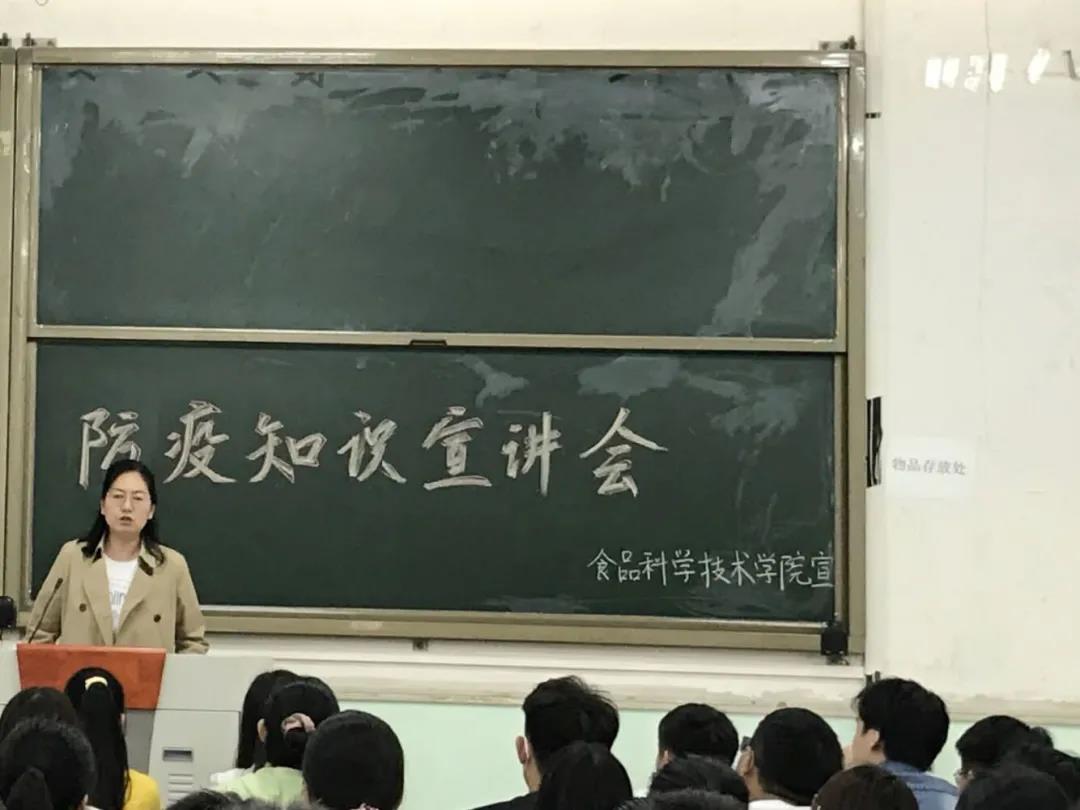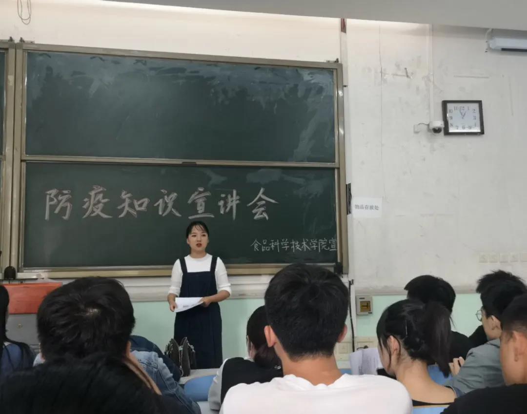 于文化路校区工程楼101教室召开防疫知识宣传会,院团委书记李蓓蓓、院辅导员黄姗姗出席会议,学院全体班长支书与离校学生参加会议。