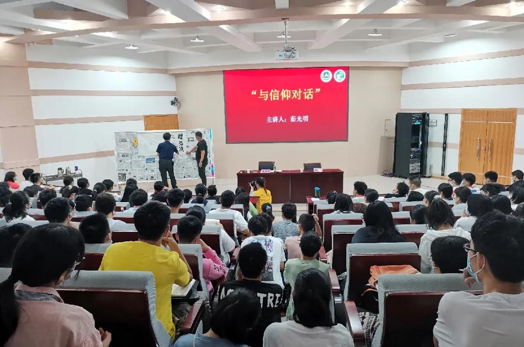 于文化路校区第一报告厅举办“与信仰对话”专题报告会,学院特邀党建组织员茹光明老师为全体2020级新生开展入党启蒙教育。