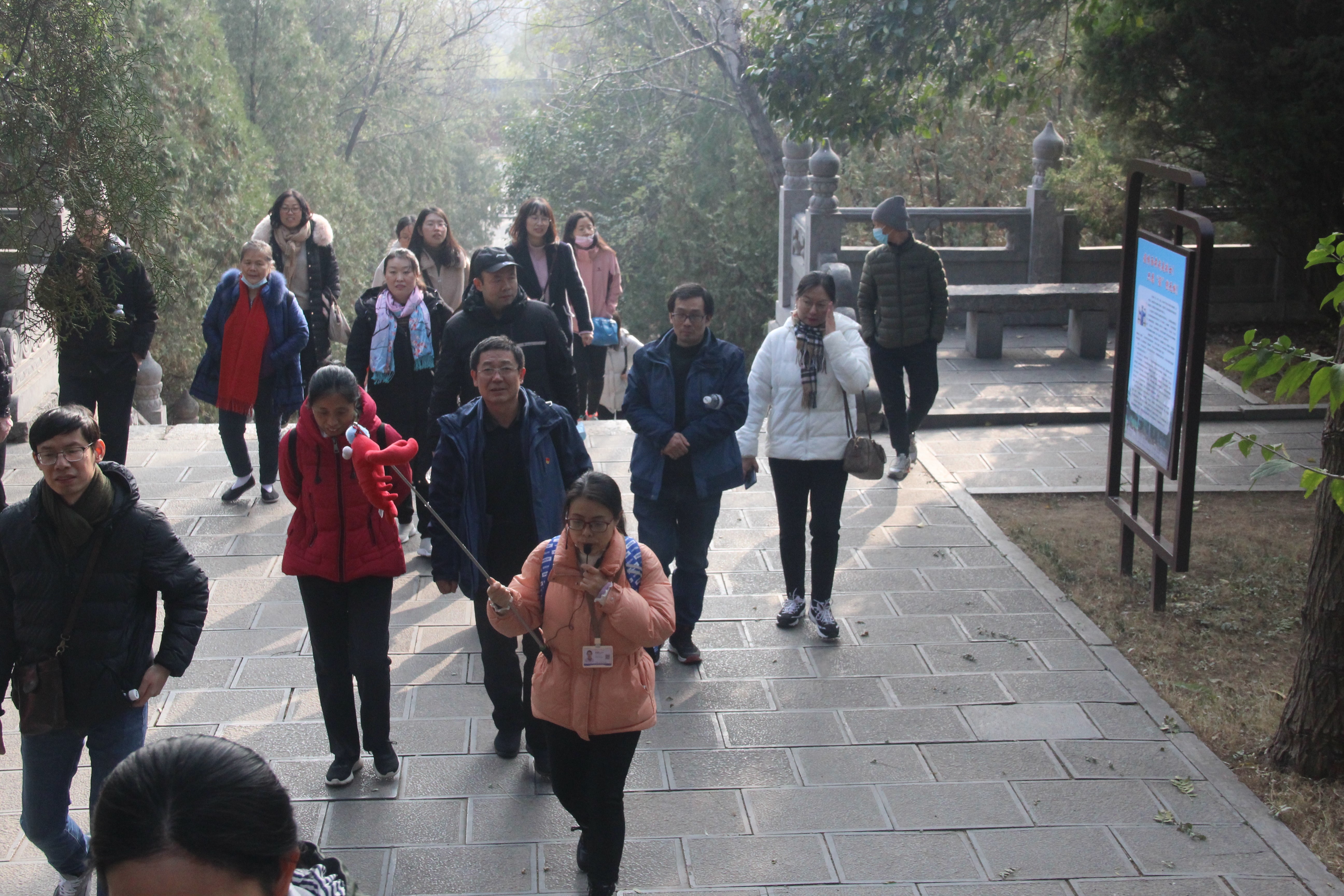 下午两点,教工们乘车到达嵩山脚下。第一站,参观了嵩阳书院。在导游的介绍下,大家对嵩阳书院的历史发展和文化底蕴有了进一步了解,深切感受中国文化的博大精深,民族认同感和自豪感油然而生。