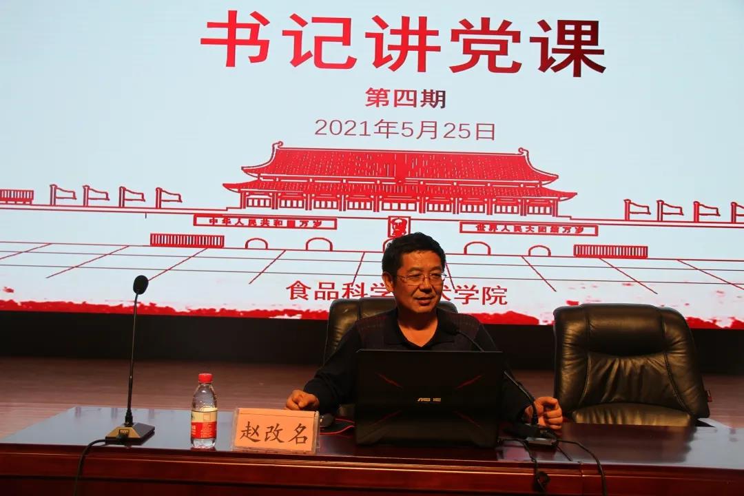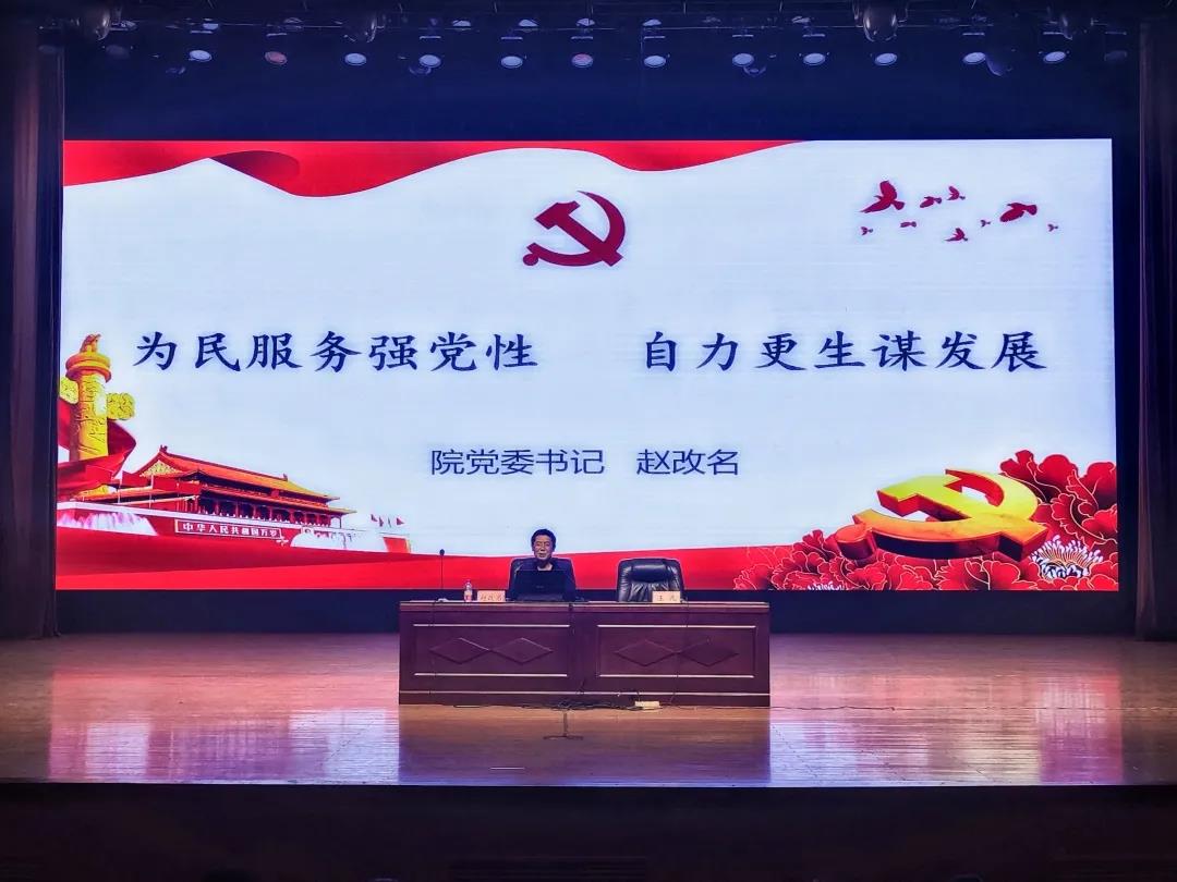 赵改名以“为民服务强党性,自力更生谋发展”为主题,从坚持走群众路线的工作方法、树立为人民服务的工作态度、保持自力更生的奋斗精神三个方面进行讲述,通过讲述党史历程,他表示,我们要坚持群众路线,做到全心全意为人民服务,要以先进为榜样,传承并发扬红色精神。同时,他向全院师生党员们介绍了我们党历史上艰苦奋斗的事例,并结合新时代的实际情况,希望大家要勇于在艰苦奋斗中净化灵魂、磨砺意志、坚定信念,始终保持革命者的大无畏奋斗精神,拥有鼓起迈进新征程、奋进新时代的精气神。