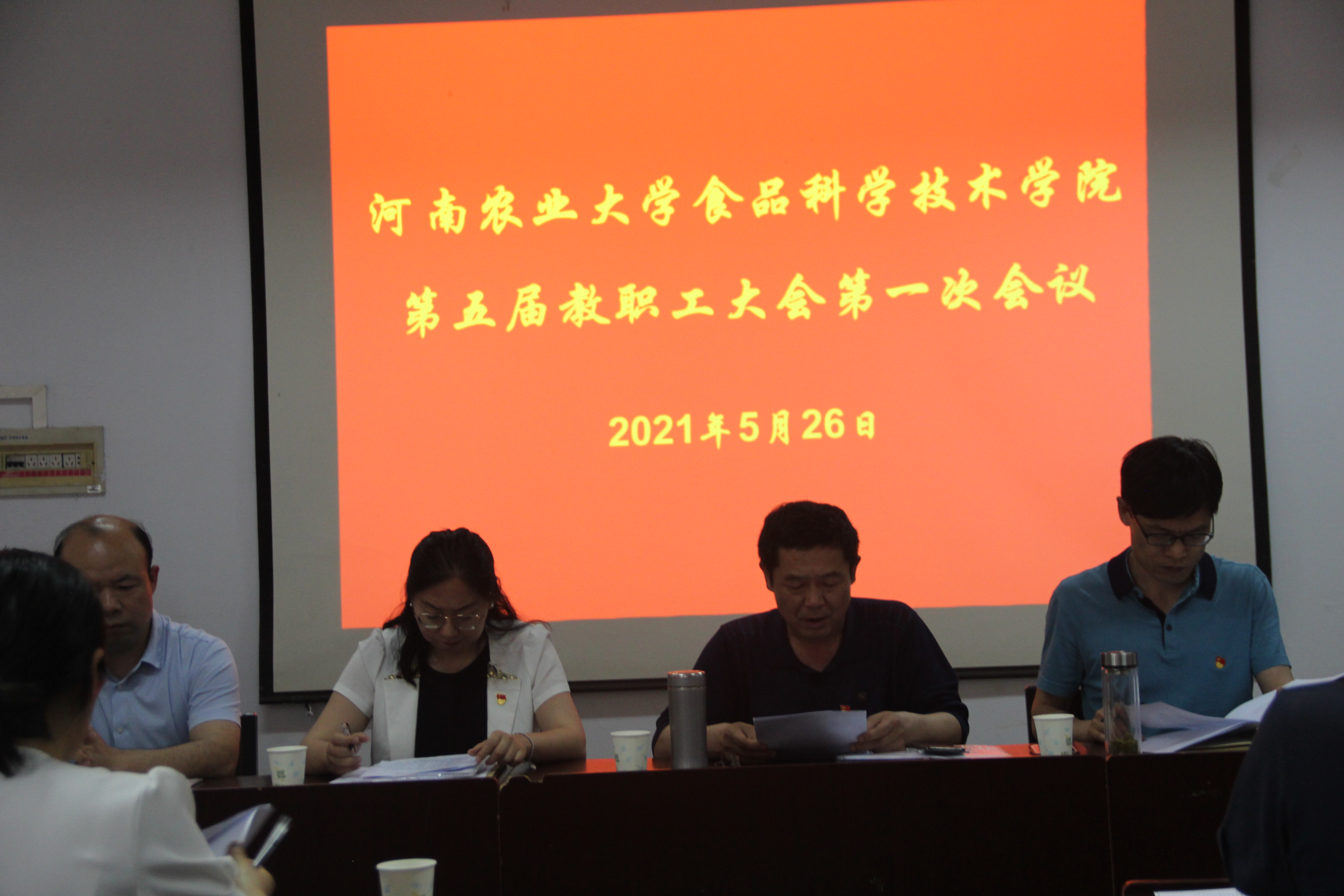 在学院报告厅隆重召开了第五届教职工大会第一次会议。学院全体教职工参加。大会由学院副书记李蓓蓓主持。会上听取并审议了黄现青院长作的《院长工作报告》,学院分工会主席、学院副书记李蓓蓓的《工会工作报告》,并审议了谢新华副院长提交的《关于2020年财务预算执行情况及2021年财务预算的报告》。