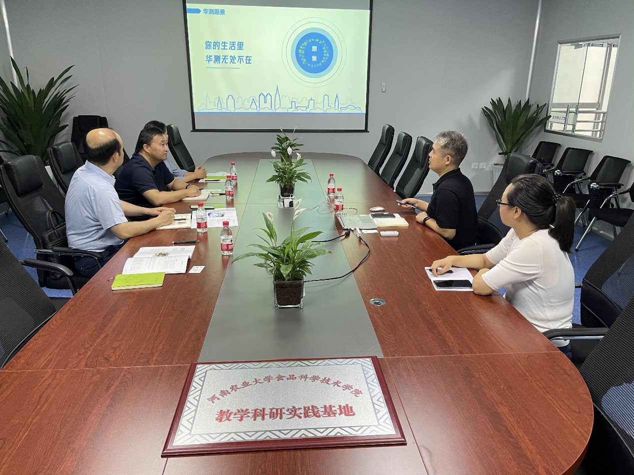 为深化教育教学和服务水平,加强校企合作,拓展学生实习基地,并搭建培养人才战略平台,2021年6月17日上午,在副院长张剑教授的带领下,食品质量与安全系主任索标副教授、系副主任张西亚副教授、程永霞博士一行4人赴河南华测检测技术有限公司进行访问交流。河南华测副总经理秦学磊、高级工程师杨君丽、人事专员史淼出席了座谈会,并陪同考察。