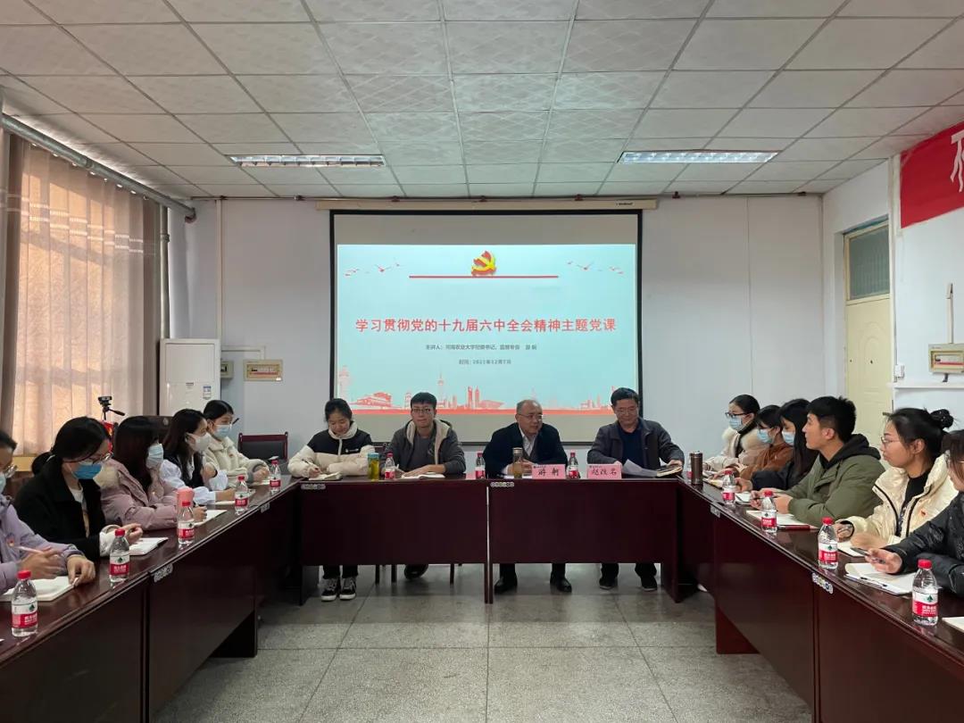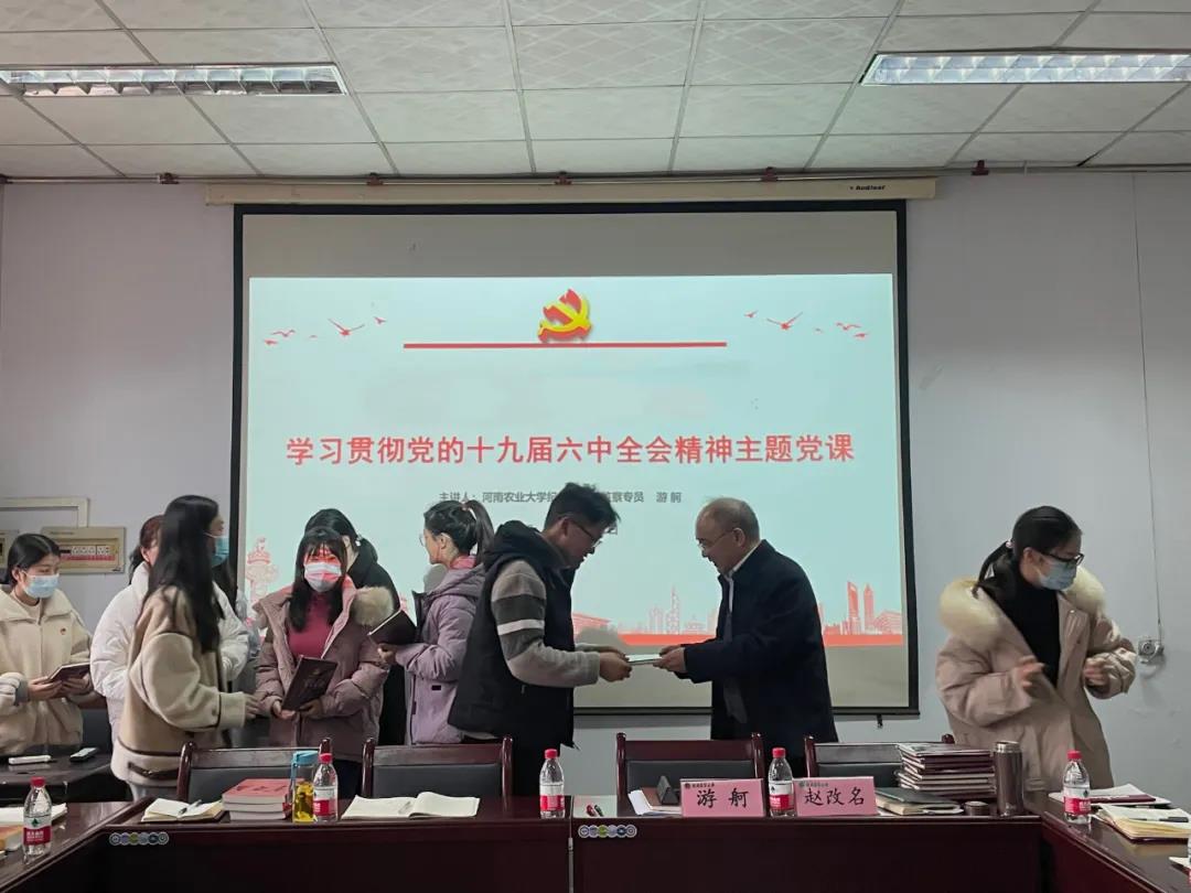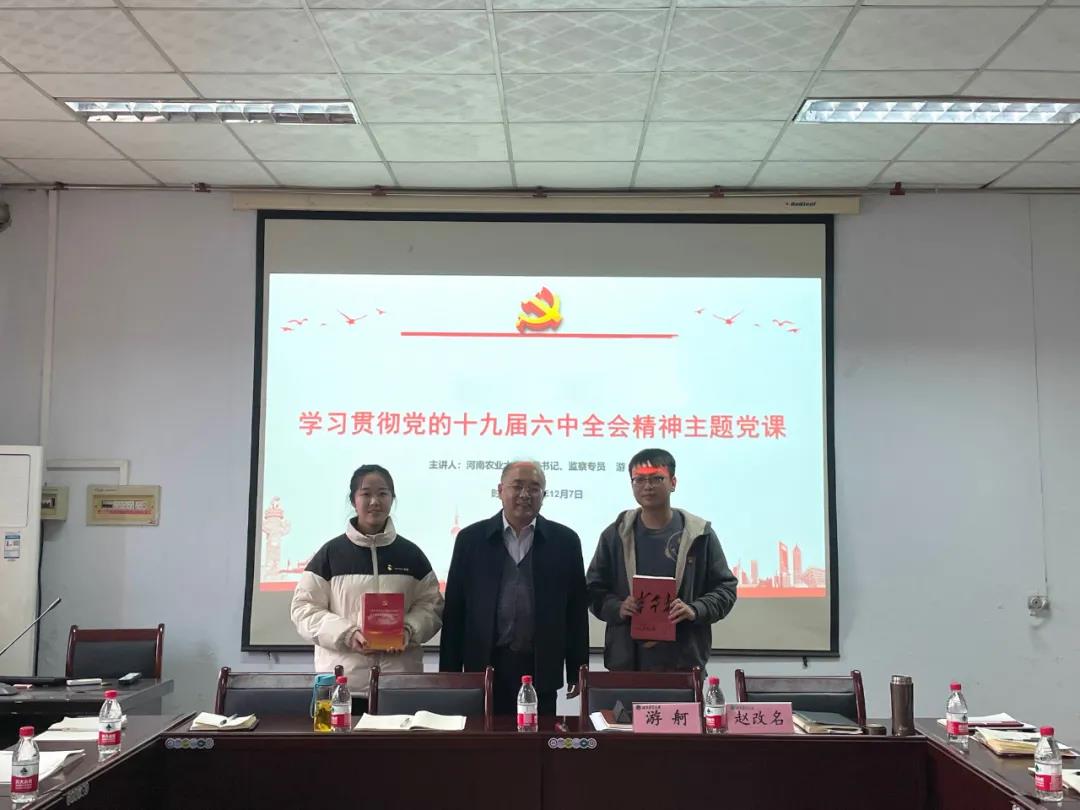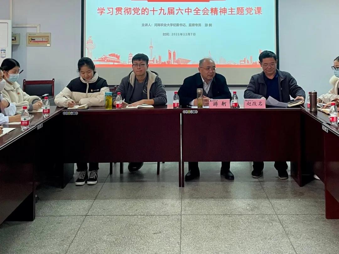 ,为联系的食安专业学生党支部上专题党课,宣讲党的十九届六中全会精神。校纪委有关负责人陪同调研,院领导班子、食安专业学生党支部全体党员参加会议。会议由院党委书记赵改名主持。