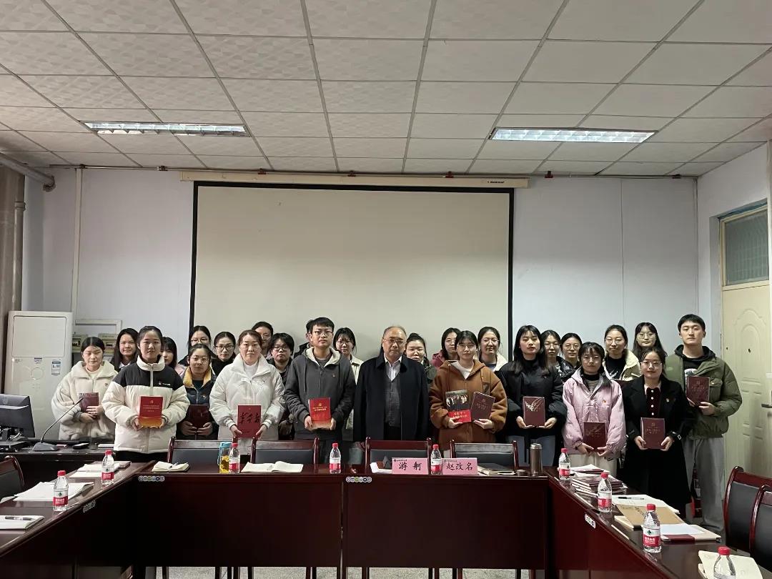 食安专业学生党支部赠送《党的十九届六中全会<决议>学习辅导百问》《革命者》《习近平与大学生朋友们》等学习辅导书籍,并赠予每位学生党员一本学习笔记本。