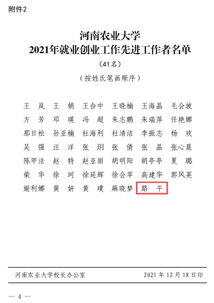 (通讯员 王雨欣)近日,我校发布《关于表彰2021年就业创业工作先进单位和先进工作者的决定》(农大学〔2021〕16号)《关于表彰 2021 年大学生创新创业标兵和优秀指导教师的决定》(农大学〔2021〕17号)。探花