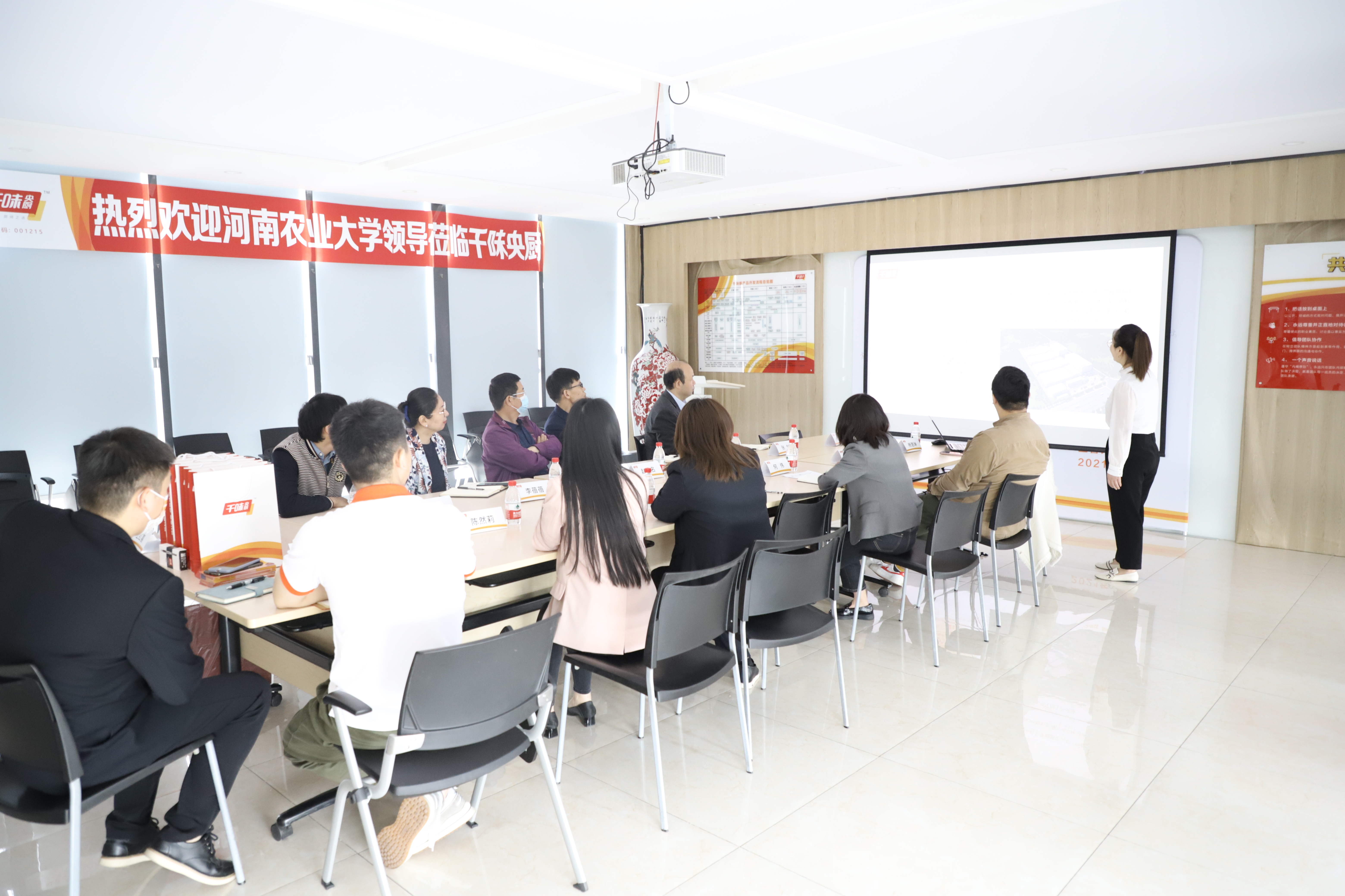赴郑州千味央厨集团开展访企拓岗促就业暨校企合作洽谈。院党委书记赵改名、院长黄现青,院党委副书记李蓓蓓、副院长张剑、教学秘书李家寅,郑州千味央厨集团运营总监何伟、人资经理尹红凯等参加了洽谈工作,并进行了校企合作协议签约与授牌仪式。