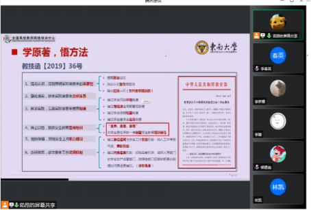 师生参加此次培训班,中心实验室全体人员、各课题组负责人及一名研究生在309会议室参加线下会议,其他人员线上参加,会议由谢新华副院长主持。
