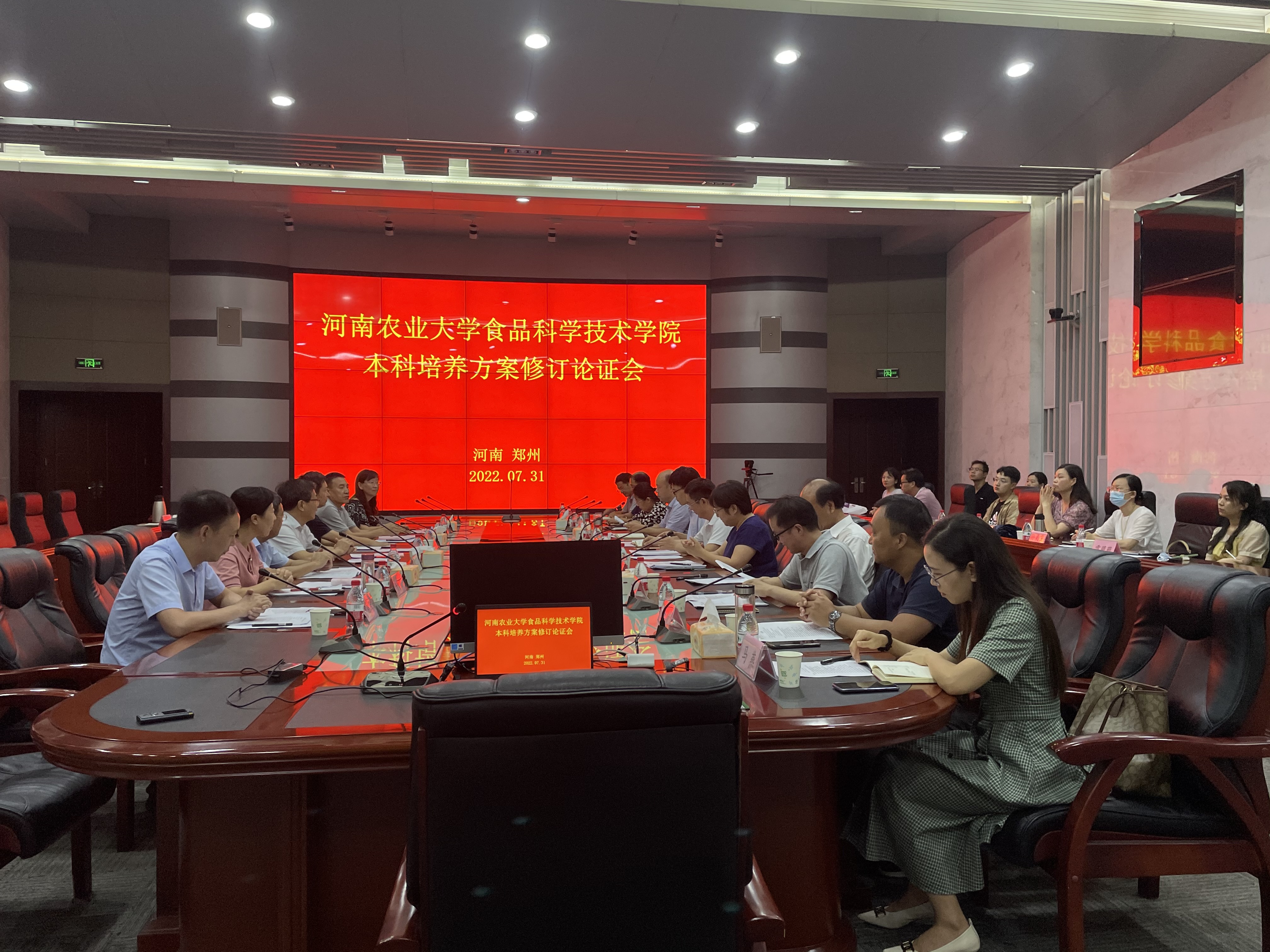 文化路校区中原农村信息港召开本科生培养方案专家论证会议。教育部食品类教指委委员河南工业大学副校长陈复生、河南省科技厅现代农业农村科技处处长李锦辉、河南省食品工业科学研究所所长王瑞国、河南省农科院农产品加工研究所所长路凤银、郑州轻工业大学食品与生物工程学院院长白艳红、大连工业大学食品学院副院长吴海涛、河南牧业经济学院科技处处长潘春梅、白象食品股份有限公司研发中心高级经理周朋辉、探花