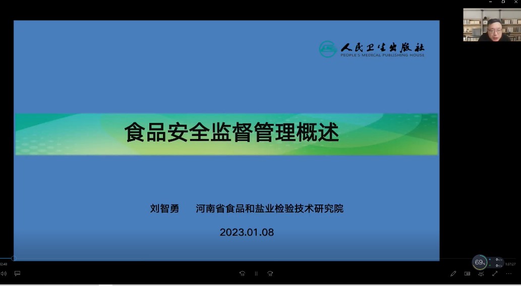 会议开始后,王田林老师首先向老师和同学们介绍了刘智勇教授:三级教授,郑州大学公共卫生学院兼职教授,河南省食品安全首席科普专家,河南省食品检验研究院食品营养与安全研究所所长,主要研究方向是食品安全突发事件应急处置、食物中毒鉴别与判定及食品安全监督执法实践。中国营养学会饮水与健康专业分会委员、中国卫生信息学会健康医疗大数据食品安全与卫生营养专业委员会委员、中国老年学学会老年营养与食品专业委员会委员、河南省卫生城镇现场技术评估和培训专家委员会委员、河南省政府食品安全专家委员会委员、河南省餐饮食品安全专家、河南省预防医学会食品卫生分会常委等。主持省部级课题3项、厅级课题2项,发表论文20余篇,科普著作及作品5部。刘教授此次目的是为了让学生们对食品安全法律法规体系和食品安全监督管理整体有了更深的感受,同时也让学生们提前了解了很多专业毕业后的岗位所需要的知识和能力,使学生们对未来生涯发展也有了新的理解和规划。还让学生们了解了自己专业方面的知识和专业以外的知识,增加对专业学科范围的感性认识,巩固深化所学的理论知识。