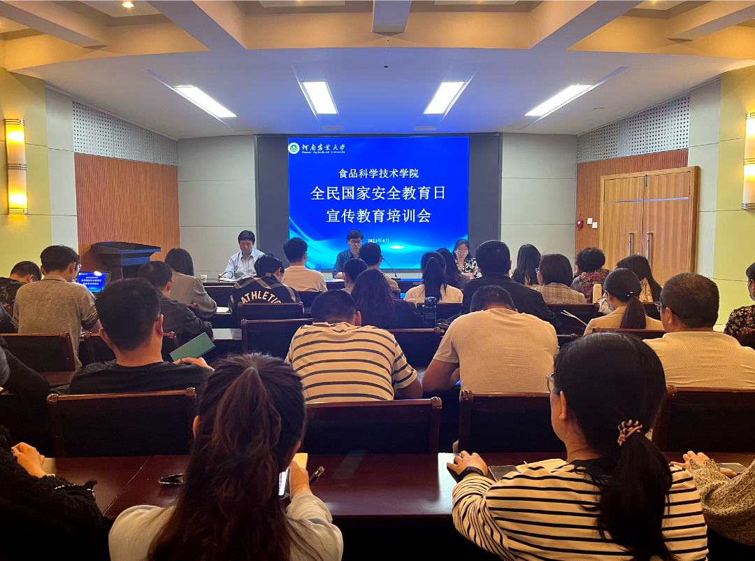 于文化路校区一百人报告厅召开法治教育宣传周暨全民国家安全教育日宣传教育培训会,院长黄现青,副院长张剑出席会议,院全体教职工和学生代表参加会议,此次会议由院党委副书记李蓓蓓主持。