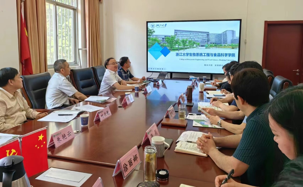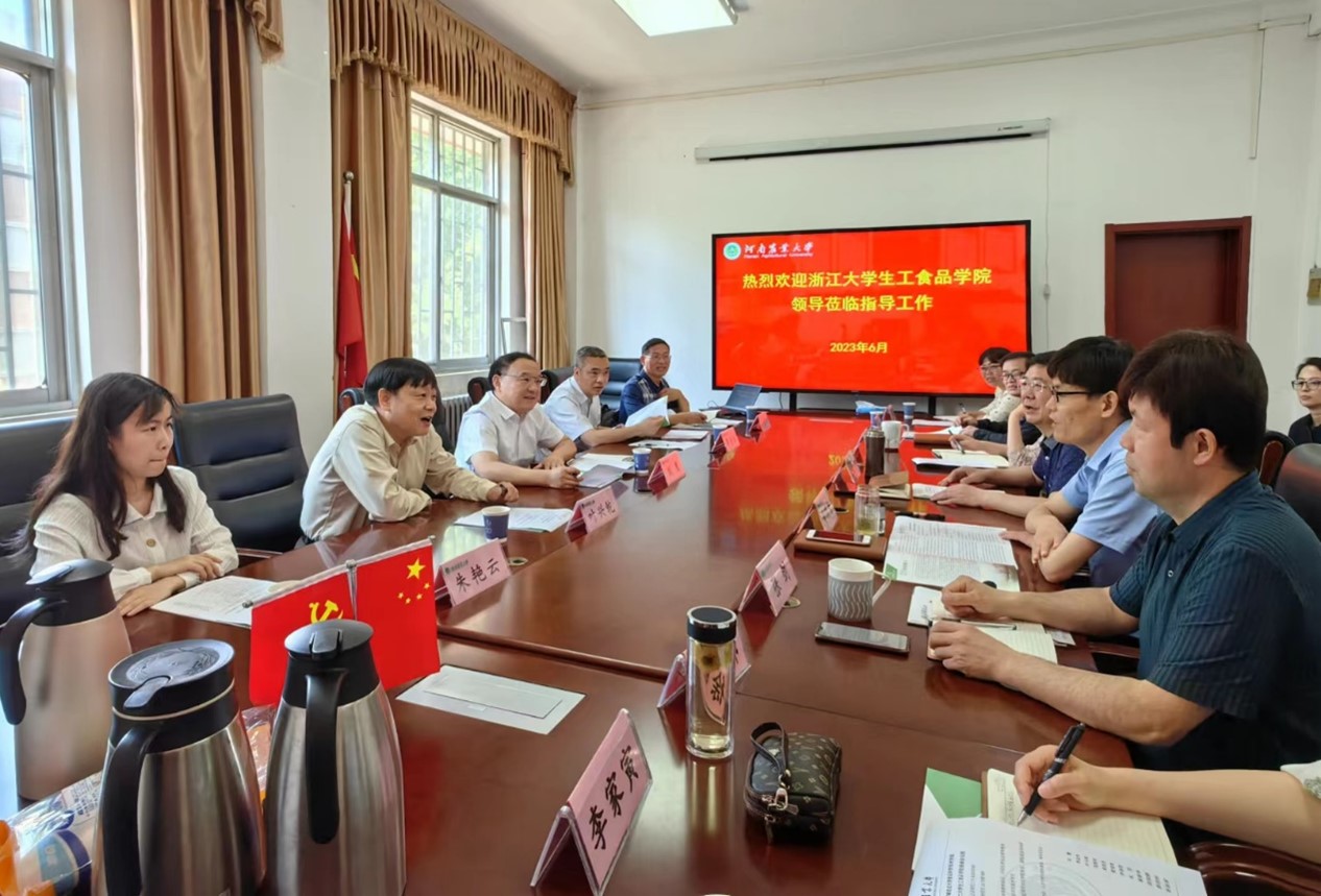 的师资、学生、科研和平台建设等基本情况和优势特色,以及学院近年来学科发展的重点工作。刘鹰院长同时详细介绍了浙江大学生物系统工程与食品科学学院与中原研究院的发展历史、学科建设及近年来的办学情况。双方重点对课程思政建设、人才引培与团队建设、学科交叉会聚以及社会服务等方面的工作深入交换了意见。