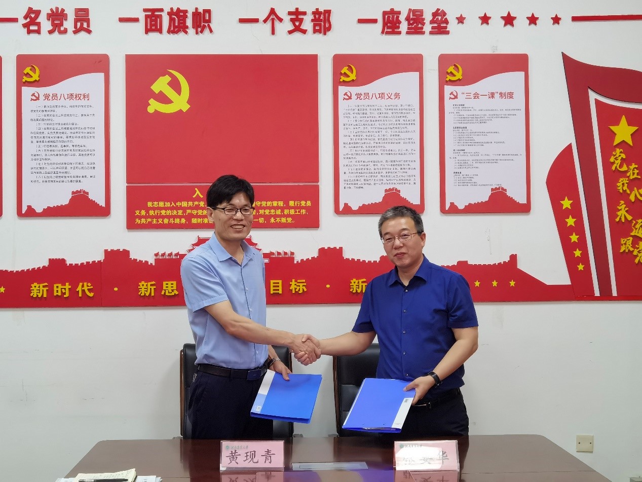 黄现青院长对郑州瑞普生物工程有限公司一行的来访表示热烈欢迎,并介绍了参会人员。张剑副院长详细介绍了学科与师资队伍建设、教育教学与人才培养、科学研究、社会服务等发展基本情况。张要华介绍了郑州瑞普生物工程有限公司基本情况以及企业发展现状等。双方重点对产学研、人才培育、学生实习与就业方面的工作深入交换了意见,签订合作协议,并举行了教学实习基地签约暨揭牌仪式。