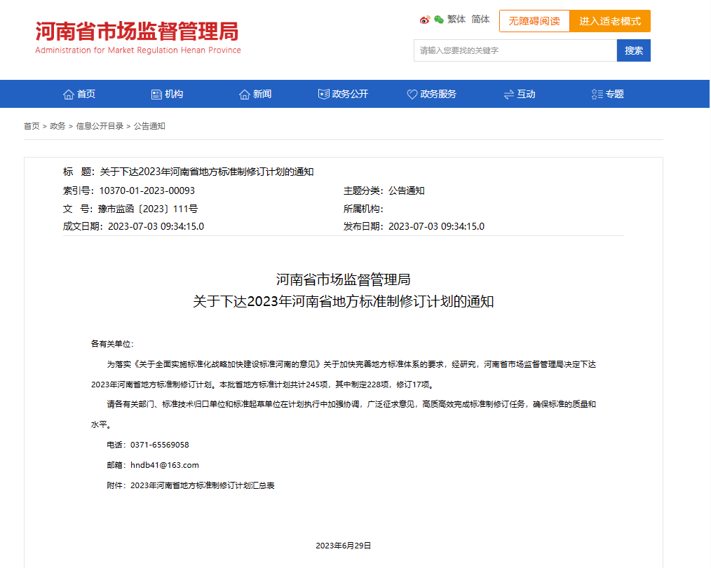 7月3日,为落实《关于全面实施标准化战略加快建设标准河南的意见》关于加快完善地方标准体系的要求,河南省市场监督管理局下达2023年河南省地方标准制修订计划。探花