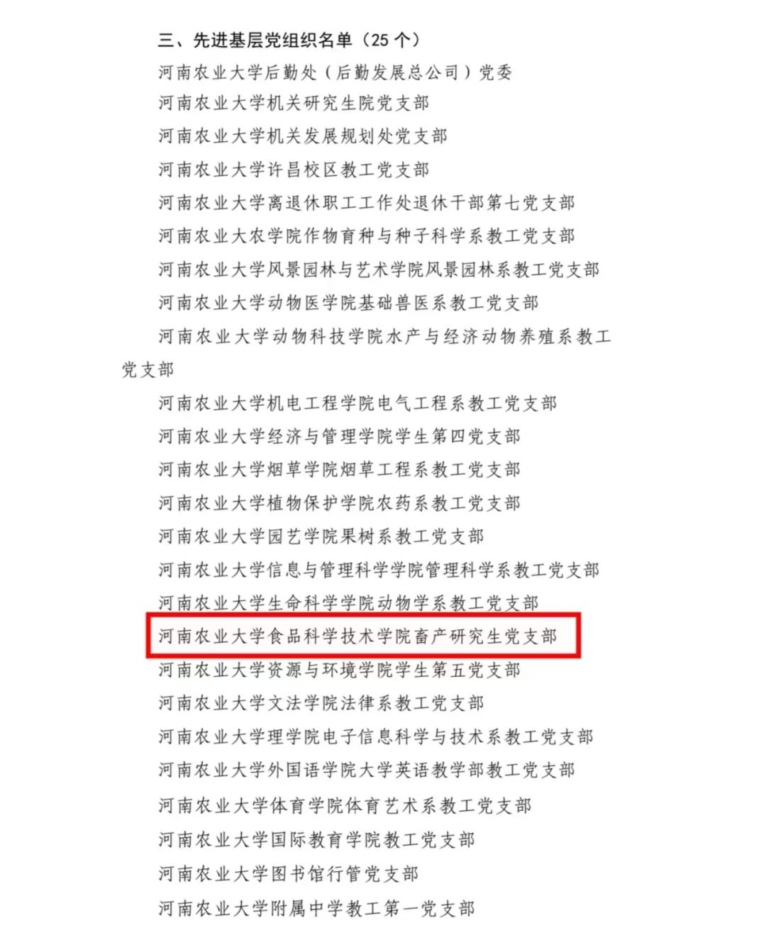 畜产研究生党支部荣获“先进基层党组织”称号;院党委副书记李蓓蓓荣获“优秀党务工作者”称号;探花