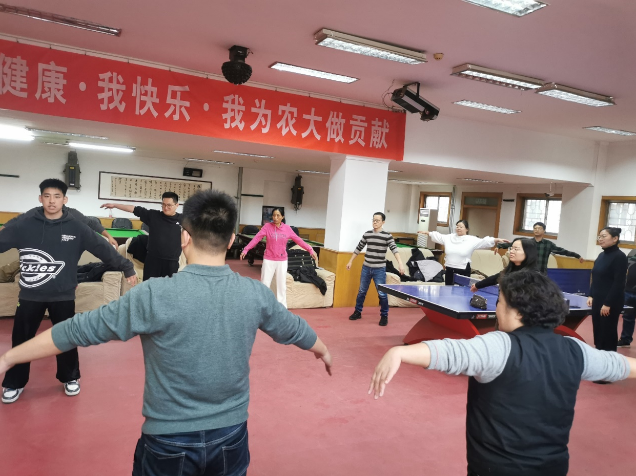 特邀请体育学院牛浩凯老师为学院教职工指导八段锦练习。