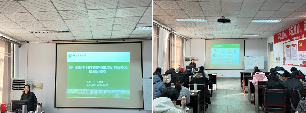 王世琼博士讲解了微生态制剂对仔猪肠道屏障的影响及其机制的研究,其中包括酵母培养物对猪仔肠道屏障的影响以及酵母培养物保护猪仔肠道屏障的潜在机制研究,其研究内容、研究方法为在场研究生提供了科研思路与指导。