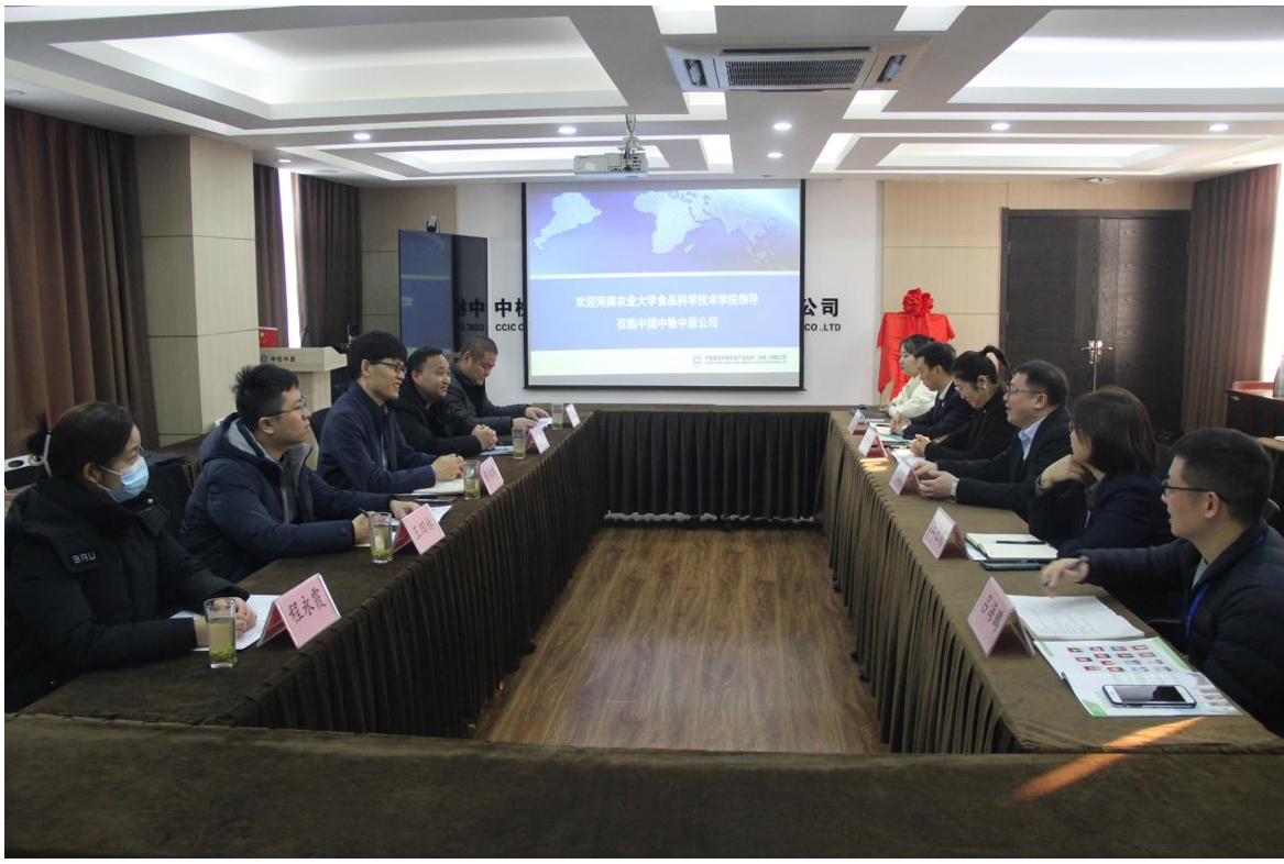 与中检集团中原农食产品检测(河南)有限公司合作建设产教融合教学科研实践基地,推进学院实践教学质量进一步提升。2023年12月28日上午,在院长黄现青教授的带领下,食品质量与安全系主任索标教授、系副主任王田林博士、张西亚副教授、程永霞博士一行人赴中检集团中原农食产品检测(河南)有限公司举行教学科研实践基地揭牌仪式。中检中原公司总经理孙武勇,副总经理王艳莉,业务经理张卫东,检测部副经理吕海鹏,中检河南公司人事经理陈璐出席了活动。