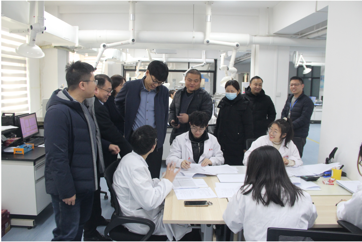 一行参观了公司的样品接收室、样品存放库、样品前处理实验室、常规理化实验室、元素分析检测室、微生物检测室等。参观期间,黄院长一行与探花