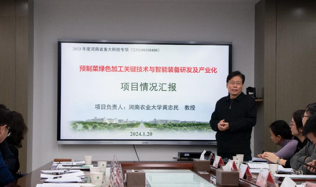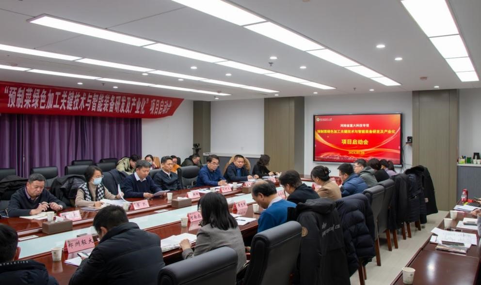 黄忠民教授主持的河南省重大科技专项“预制菜绿色加工关键技术与智能装备研发及产业化”项目启动会在龙子湖校区召开。副校长刘晓永,科技厅农业农村科技处处长李锦辉,郑州市科技局农村科技处处长李凯出席会议。郑州轻工业大学食品学院院长张华教授、河南工业大学机电学院院长吴兰教授、河南省食品工业研究所所长王瑞国高级工程师(正高级)等专家学者,探花