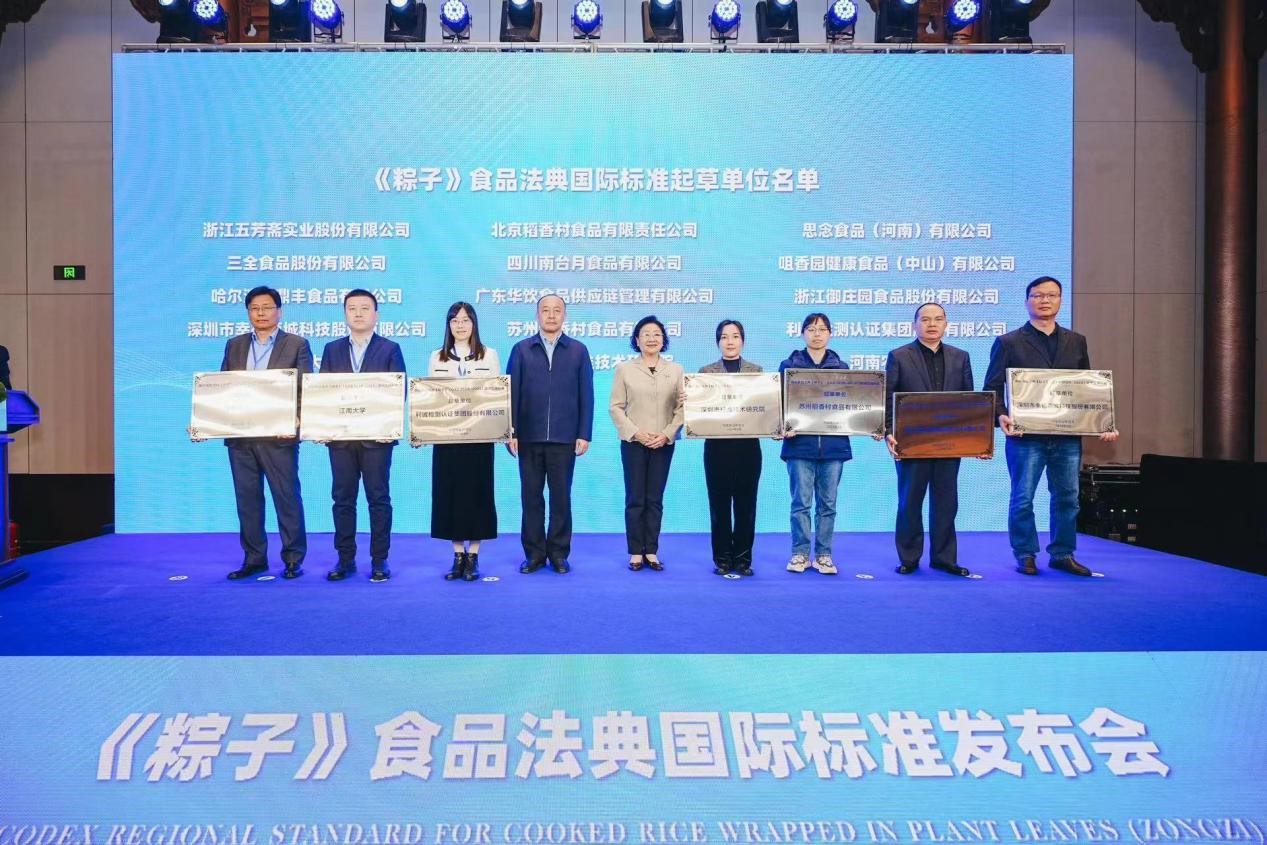 《粽子》食品法典国际标准是我国在国际食品法典委员会(CAC)提出并主导组织制定的中国传统食品国际标准,于2023年12月在联合国粮农组织和世界卫生组织共同举办的国际食品法典委员会第46届会议上正式获批发布,标准代号为CXS 355R-2023。商务部流通业发展司副司长赵涛、国家食品安全评估中心副主任樊永祥、农业农村部农产品质量安全中心总农艺师孔巍、中国商业联合会副会长张丽君等有关领导以及来自五芳斋、北京稻香村、哈尔滨老鼎丰、思念食品、三全食品等企业及探花 、江南大学起草单位的代表参加了本次发布会,探花 二级教授、中国食品工业协会粽子行业委员会专家委员黄忠民全程参与了该项国际标准的起草工作并共同见证全球首个中国传统节令食品国际标准的发布。