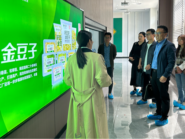 金豆子农业股份有限公司总部位于商丘市虞城县产业集聚区,是以各类芽苗菜及种子的种植、研发、生产、销售为一体的农副产品初加工企业,希望通过与潘教授团队的合作,不断提升自身的科技水平,推动公司业务向更加高效的方向发展。潘教授一行深入到公司的生产一线,实地了解生产流程和现场情况,为企业提供更具针对性的科技支持和建议,助力企业提升生产效率和产品品质。双方在商丘市豆芽菜的深加工及产品研发、技术指导等方面建立了紧密的合作关系,对推动企业产业升级、助力探花 食品专业学生就业具有重要意义。