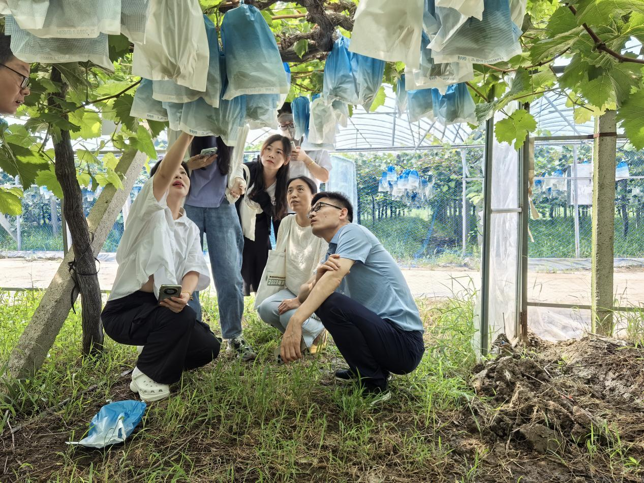在驻马店市遂平县,黄院长一行访问了河南杰美农业科技有限公司。杰美葡萄已通过国家绿色食品认证,并建设完成了产品质量追溯体系。公司正计划利用大数据和现代物流技术对商品的生产、运输与销售过程进行全面升级,致力于打造高质量的水果生鲜供应链行业品牌。杰美农业科技有限公司现有温棚12座、避雨棚344座、恒温库一座,是一家集葡萄种植、加工、培育、推广、休闲体验和生态旅游为一体的生态产业园区。公司先后被授予驻马店市农业产业化龙头企业、驻马店市新型农业经营主体先进单位等称号,并被中国农学会葡萄分会、中国果品协会葡萄分会授予葡萄新品种技术研发示范基地。通过土地流转、产业扶贫、吸纳务工等方式,带动了周边群众稳定增收、脱贫。