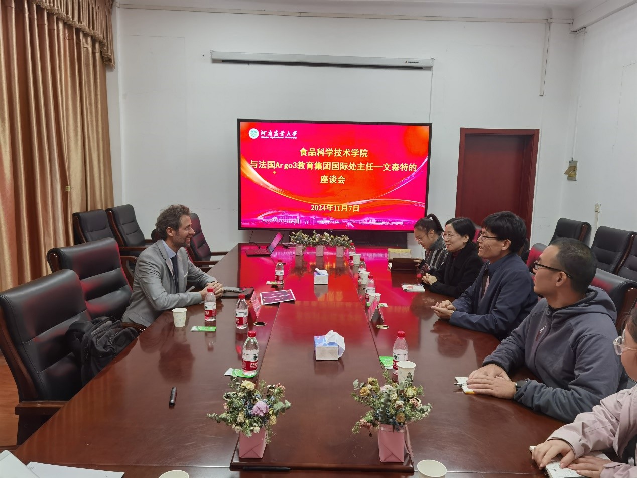 的科研团队、专业设置、学科建设和人才培养等基本情况。李宁教授详细介绍了学院关于国际留学生的培养方案、课程设置、学位授予等方面的工作。文森特主任则重点介绍了Argo3教育集团的办学特色、学科专业、科学研究和人才培养等情况。随后,双方就本科生和研究生的互换交流、短期访学以及国际合作项目申报等问题进行了深入交流与探讨。