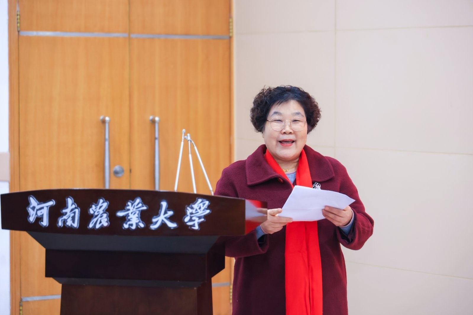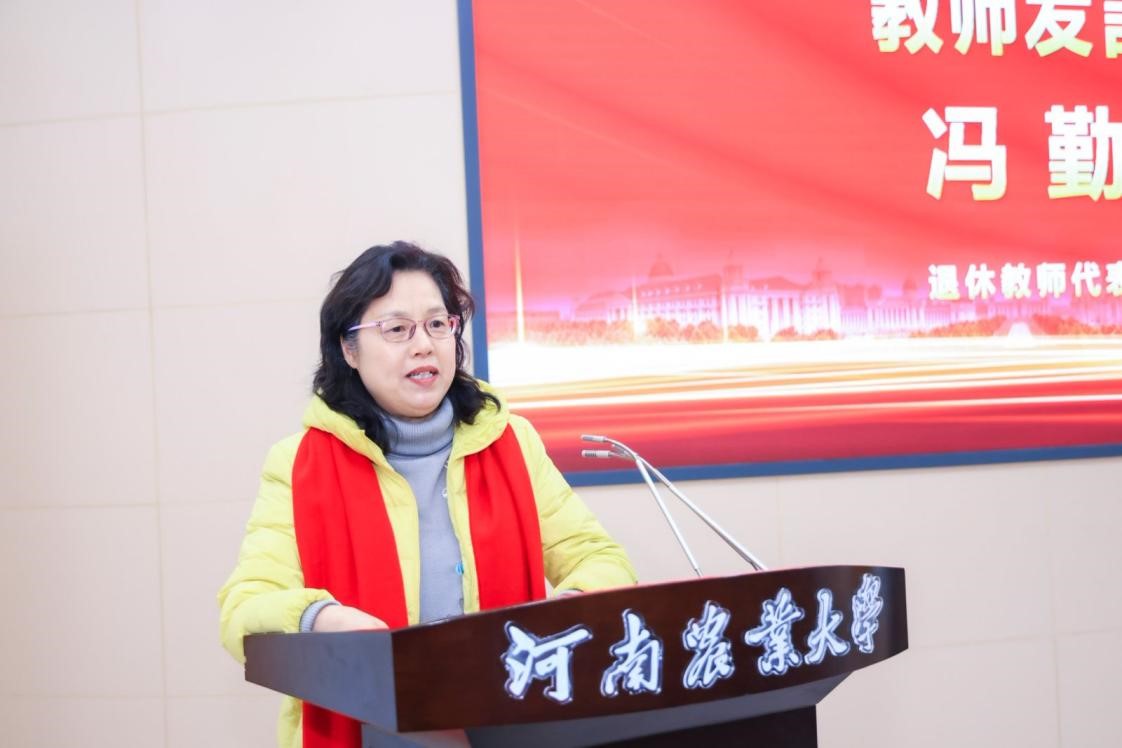 教授代表李梦琴回顾了学院从无到有的创业之路,她始终胸怀对时代、对学校和学院的感恩之情,几十年如一日,与学院风雨同舟,共同进步。她寄语青年教师,发扬艰苦奋斗的精神,为学院的发展积极贡献、添砖加瓦。