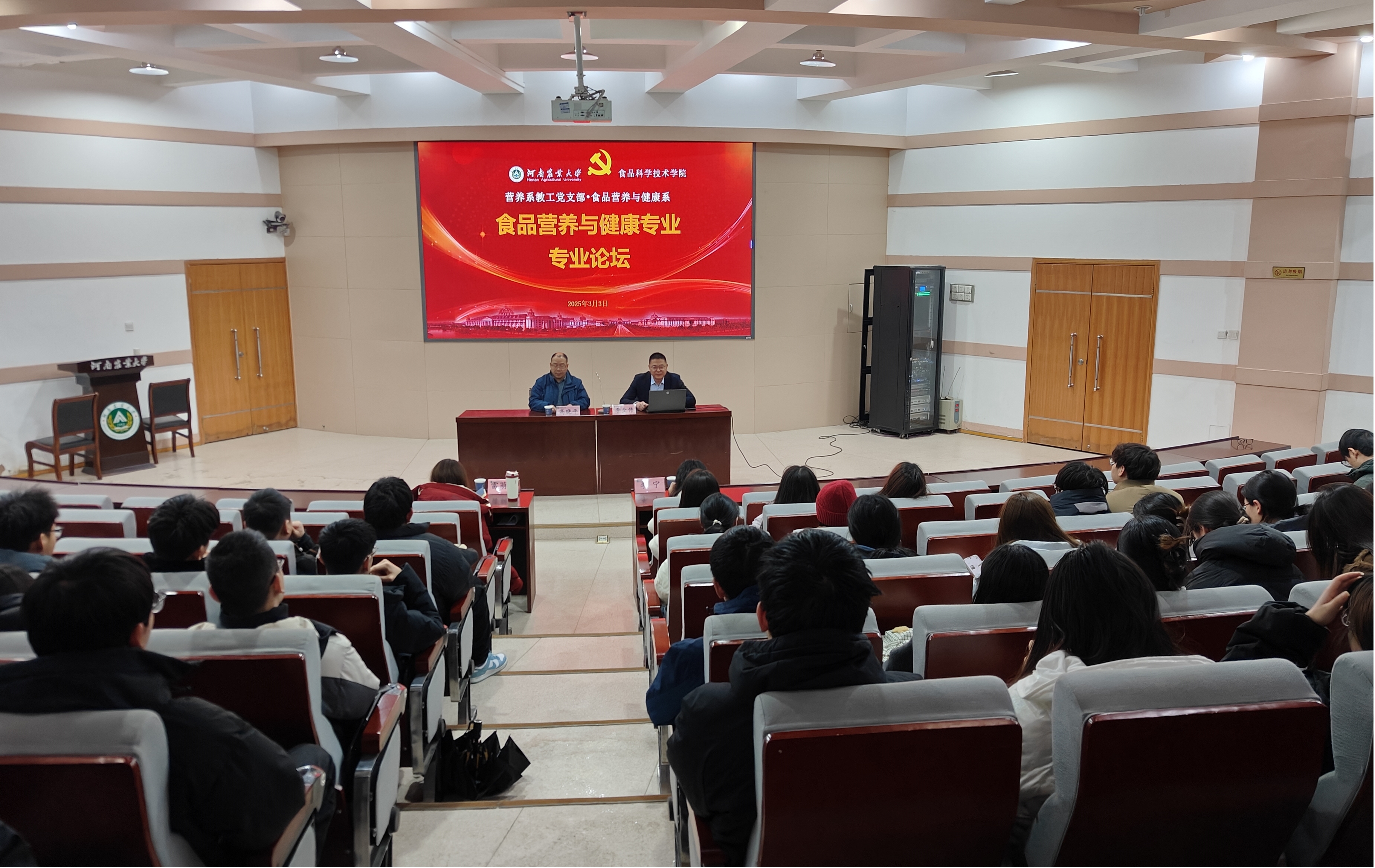 食品营养与健康系在文化路校区300人报告厅成功举办‘健康新时代,营养新助力’主题论坛,聚焦营养健康前沿话题。河南省特需食品研究院院长李全伟应邀担任主讲,食品营养与健康专业l论坛授课老师出席,学生积极参与,现场气氛热烈。