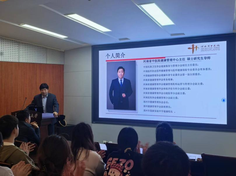 (通讯员 雷萌萌)4月22日下午,食品营养与健康教工党支部于100人报告厅举办了一场针对食品营养与健康专业本科生的名师讲堂活动。本次活动荣幸地邀请到了河南省中医院健康管理中心主任、硕士生导师刘永生,围绕健康管理主题展开深入讲座。探花