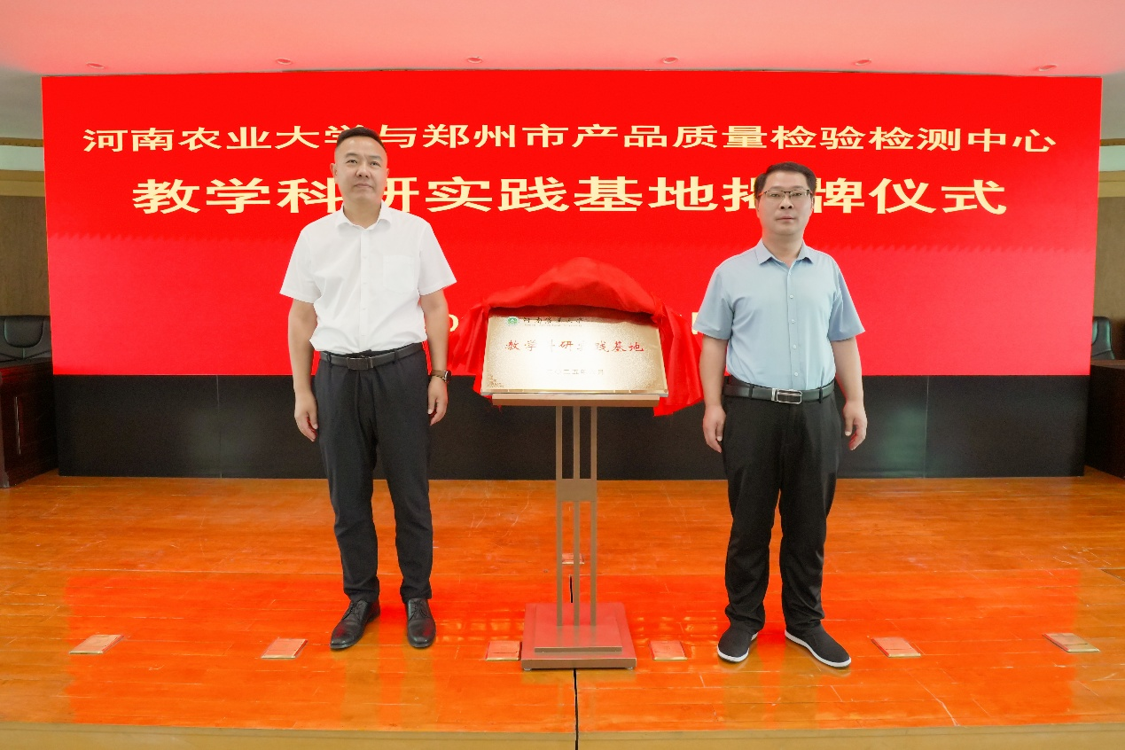 教务处处长胡建军与郑州市产品质量检测检验中心党委书记段祥生共同为基地揭牌。探花