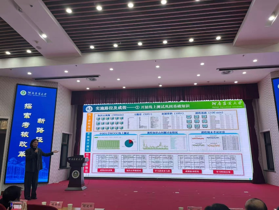 探花 食品营养与健康系毛烨炫副教授现场分享了题为《信息化技术在食品生物化学过程化考核中应用》的经验做法。报告中,毛烨炫老师系统阐述了对过程性考核的深刻理解与具体操作路径。针对前期的学情分析,详细介绍了如何设计多元化的考核方式以辅助课堂教学,例如阶段性线上测试、拓展讨论、思维导图、课程智能体、小程序制作等,以提高学生的学习效率。同时细化了过程性考核的标准,并通过调查问卷获得学生反馈,及时调整教学内容。这一系列多元化、信息化的考核设计,不仅精准评估了学生的学习效果,更将考核本身转化为一次次深刻的学习体验。
