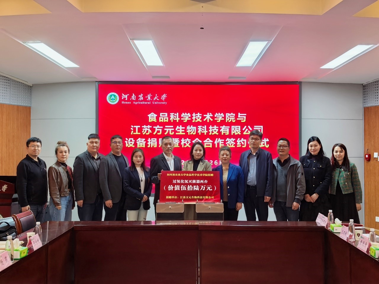 李磊介绍了江苏方元生物科技有限公司在消毒设备研发与应用方面的技术优势和行业影响力。他表示,企业始终秉持“科技服务社会、产教融合发展”的理念,希望通过此次捐赠深化与高校的合作,共同推动食品科技领域高素质应用型人才的培养,助力科研成果向产业实践转化。