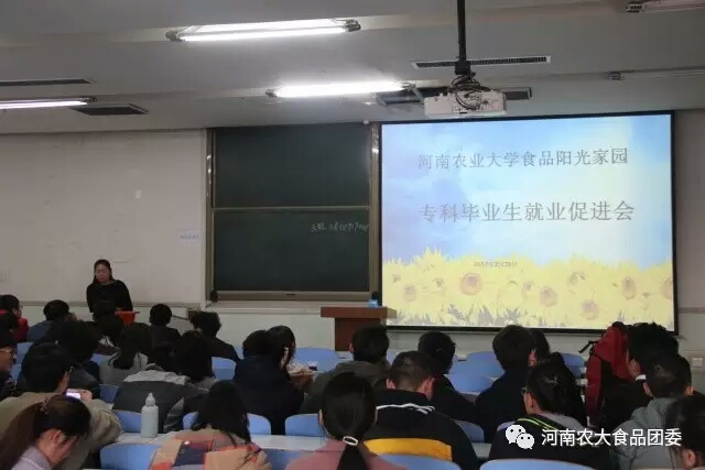在文化路校区工程楼305教室召开专科生就业促进大会。院团委书记李蓓蓓、院团委副书记杨光、院党委组织员张世昌、院辅导员孟子晴出席大会,学院2014级专科毕业生参加此次会议。