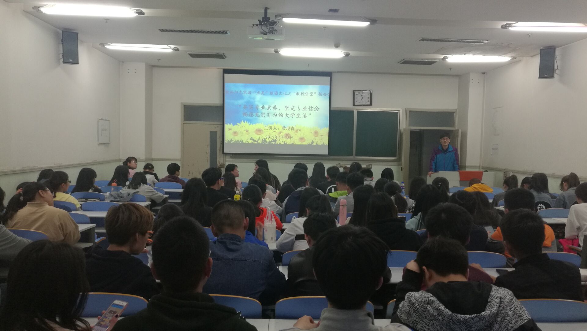 在文化路校区工程楼305教室举办“点亮”校园文化之“教授讲堂”——大学生成长成才报告会。学院副院长黄现青担任主讲。学院2015级、2016级学生代表参加报告会。
