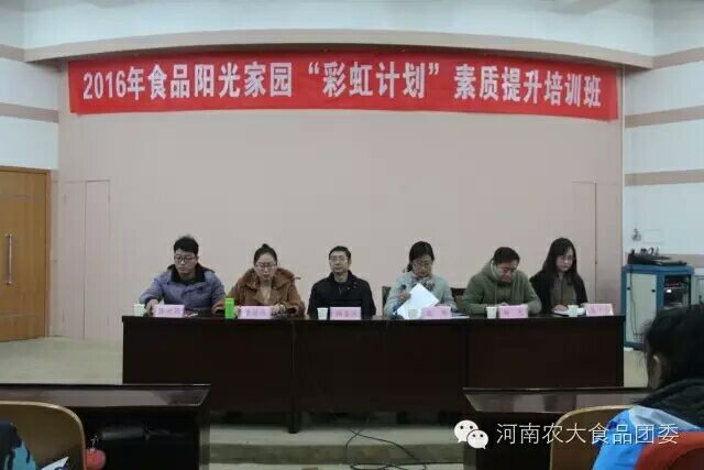 会议伊始,魏玮宣读《探花 食品阳光家园学生干部培训方案》,针对培训时间、对象、要求等方面进行详细安排部署,并着重介绍学院2016年“彩虹工程”素质提升计划,由“赤橙黄绿青蓝紫”七种颜色分别代表专业学习、生活管理、工作履历、社会实践、拓展阅读、创新创业、综合技能,并结合八个学期情况,对每位同学进行系统精准测评。随后,杨喜洲为学生干部做首场专场报告。杨喜洲从三个方面展开培训。第一指出“四个自信”与当代大学生干部责任的密切联系;第二强调大学生要树立正确的政治方向;第三希望全体学生干部争做“四有”干部,勇于担当职责,努力实现中国梦。