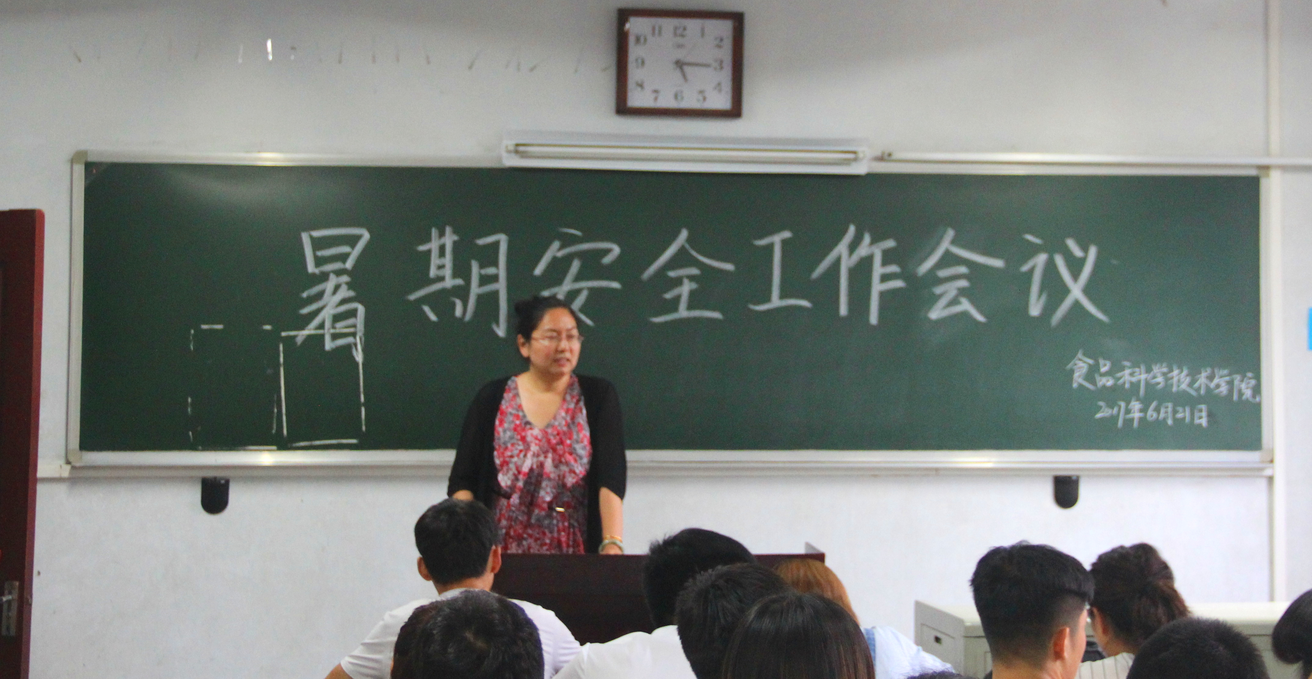 会上,李蓓蓓对考试纪律、申请留校相关事宜以及暑假期间学生安全稳定工作进行了详细的安排布署。并明确指出,学生干部要发挥好桥梁作用,认真统计好班级同学的在校和回家情况,及时汇报工作。随后,张世昌对2015级食品营养与检测学生下学期的实习事宜进行了安排介绍,并提醒同学们要注意人身、财产安全,一切以安全稳定为主。此外,孟子晴对暑假作业进行了安排布置,并强调此次作业以“彩虹工程”素质提升计划为指导,希望同学们能够积极完成各项任务,认真丰富自己的“彩虹卡”内容。
