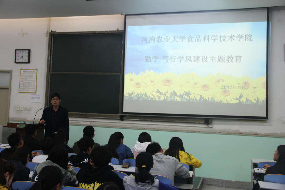 在文化路校区工程楼207召开勤学·笃行学风建设主题教育大会。特邀学院副院长黄现青担任主讲。学院各班班长、支书、学习委员参加会议。