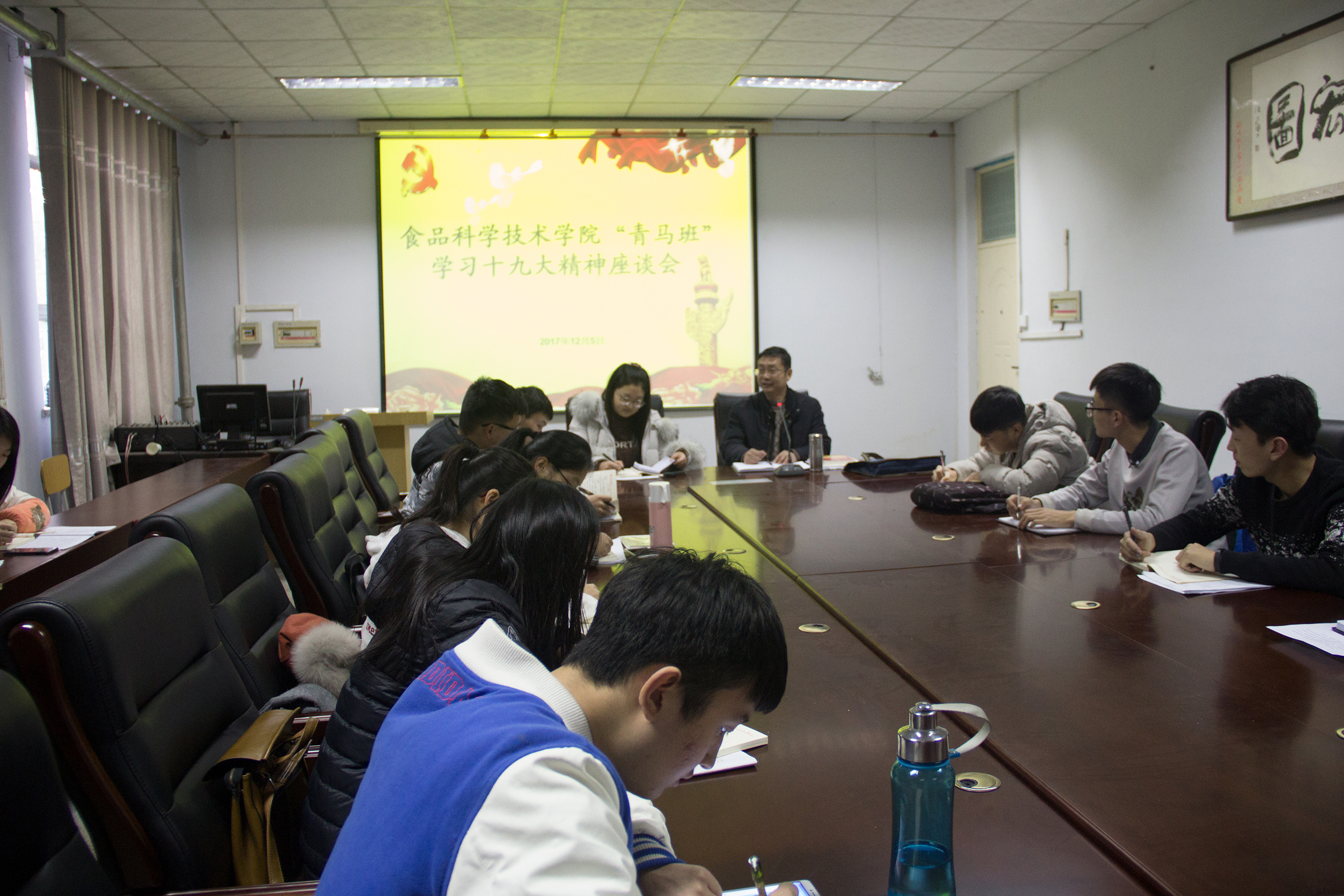 此次座谈会,是青马班成员学习党的十九大精神系列活动之一,在解决同学们学习党的十九大精神过程中的疑点、难点的同时,让学员们感受到中国在三农、文化、经济、生态等方面的蓬勃发展,进一步增强了中华儿女的前进信心,激励同学们勇攀高峰。
